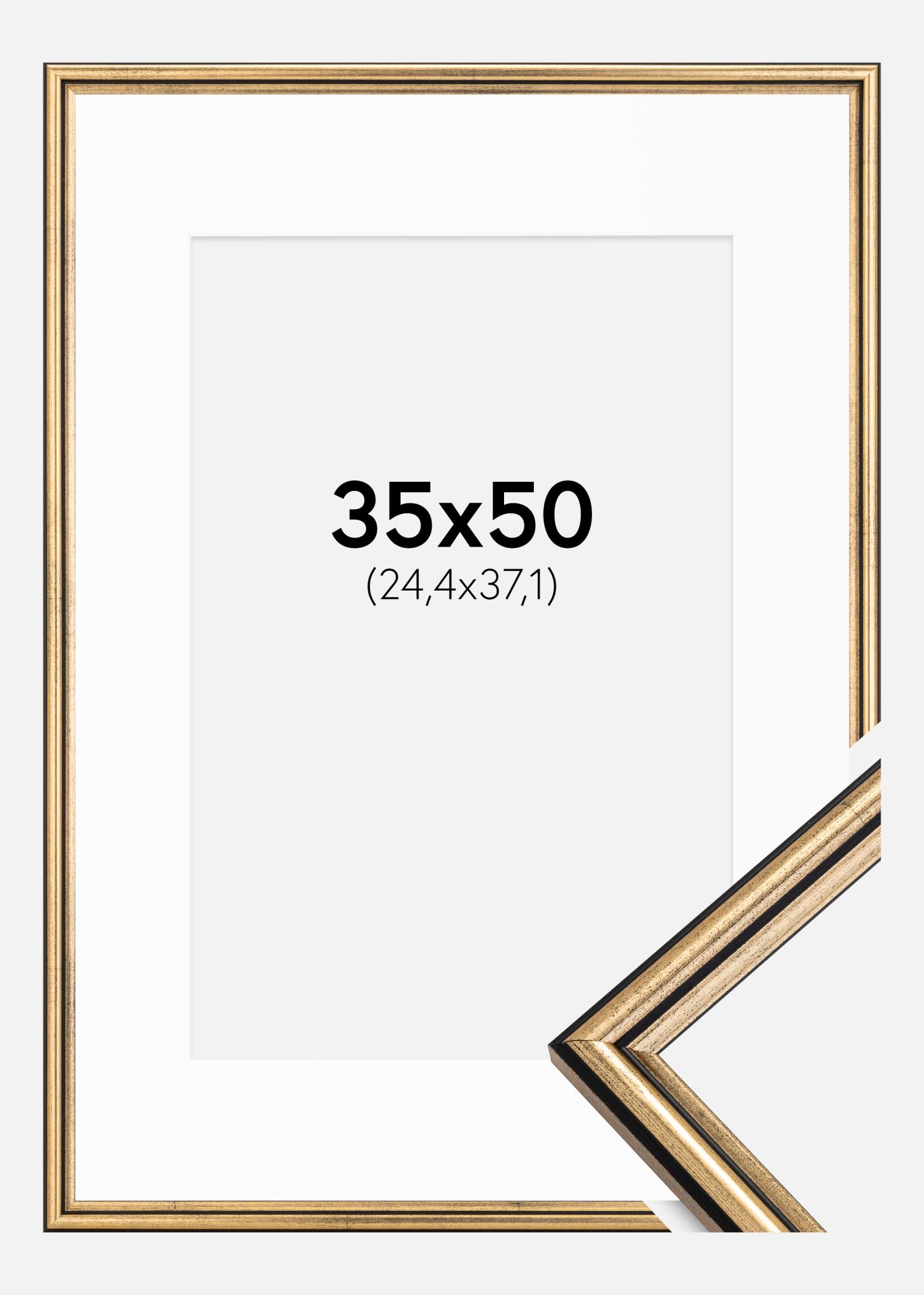 Transformă-ți fotografiile preferate în opere de artă cu o ramă elegantă aurie completată de un passepartout alb. Această ramă sofisticată oferă o încadrare luxoasă pentru fotografiile tale de 10x15 inchi (25,4x38,1 cm) și creează o pauză vizuală care întărește subiectul. Passepartout-ul alb contribuie la evidențierea imaginii și protejează în același timp de contactul direct cu sticla.