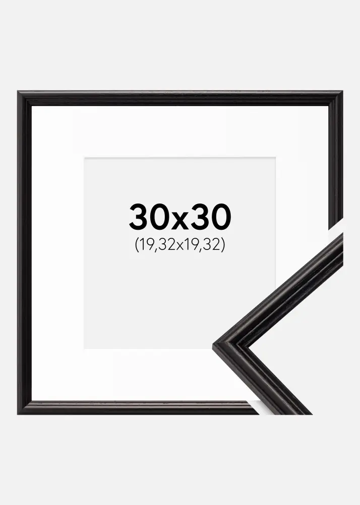 Ramă Horndal Negru 30x30 cm - Paspartu Alb 8x8 inches