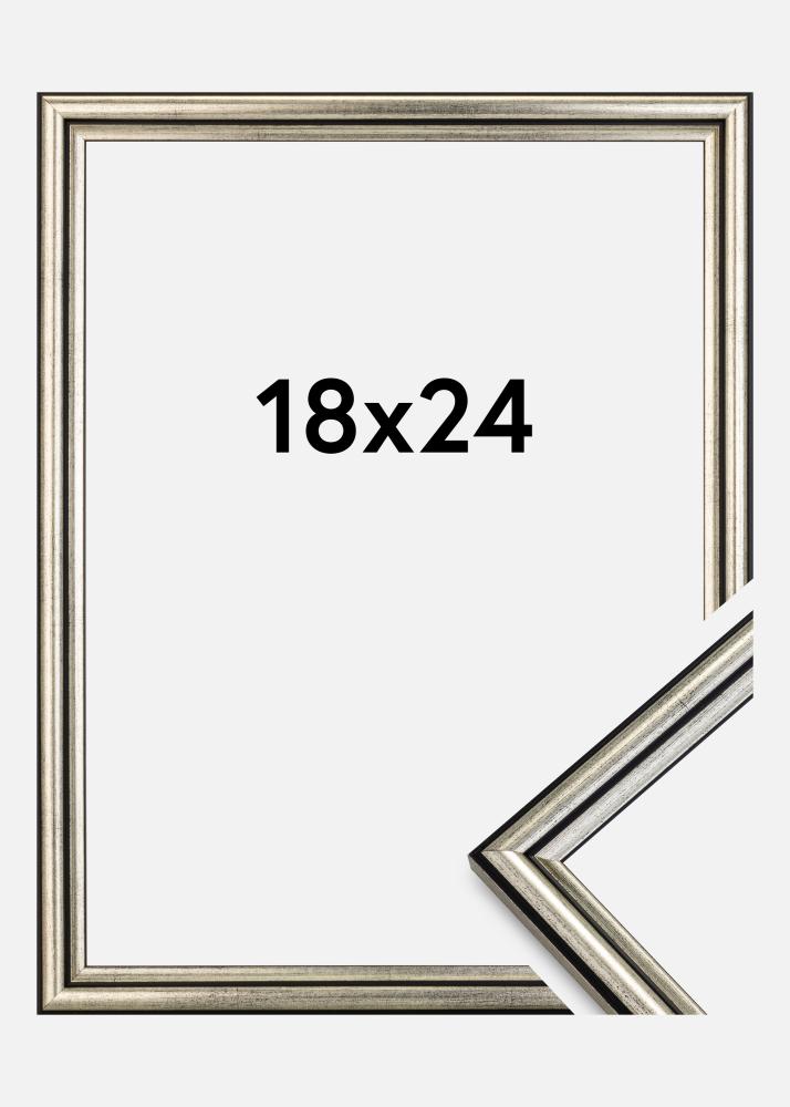 Descoperiți eleganța simplității cu cadrul nostru de 18x24 cm argintiu, un cadru de tablou elegant care completează imaginile sau operele de artă preferate. Designul cadrului este unic, cu detalii negre pătate și linii negre care oferă o impresie sofisticată. Cu o lățime a listei de cadru de 15 mm și o adâncime de 14 mm, acest cadru foto creează un contur distinct în jurul subiectului dvs.