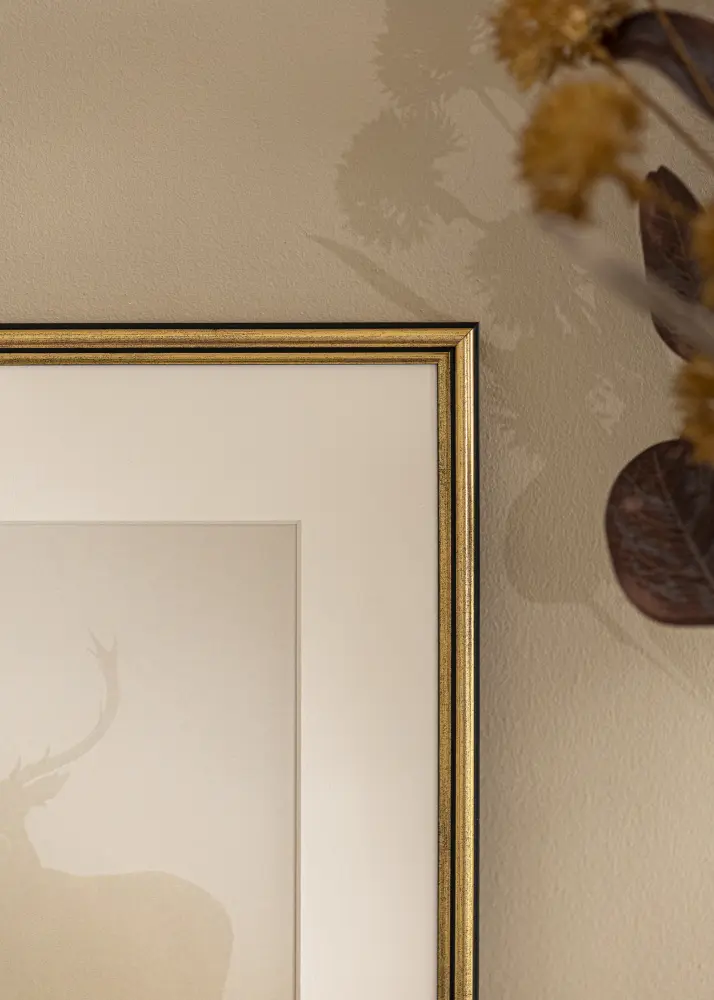 Oferă fotografiilor tale preferate un cadru luxos și inspirat din retro care adaugă o notă de aur locuinței tale. Horndal este un cadru fabricat în Suedia, cu culoare aurie cu pete negre și un finisaj mat. Nuanța cu pete negre face ca rama să aibă un aspect mai discret, care pune în evidență modelele tale. Profilul cadrului este fabricat din lemn ayos vopsit și are o lățime subțire și elegantă de doar 15 mm.