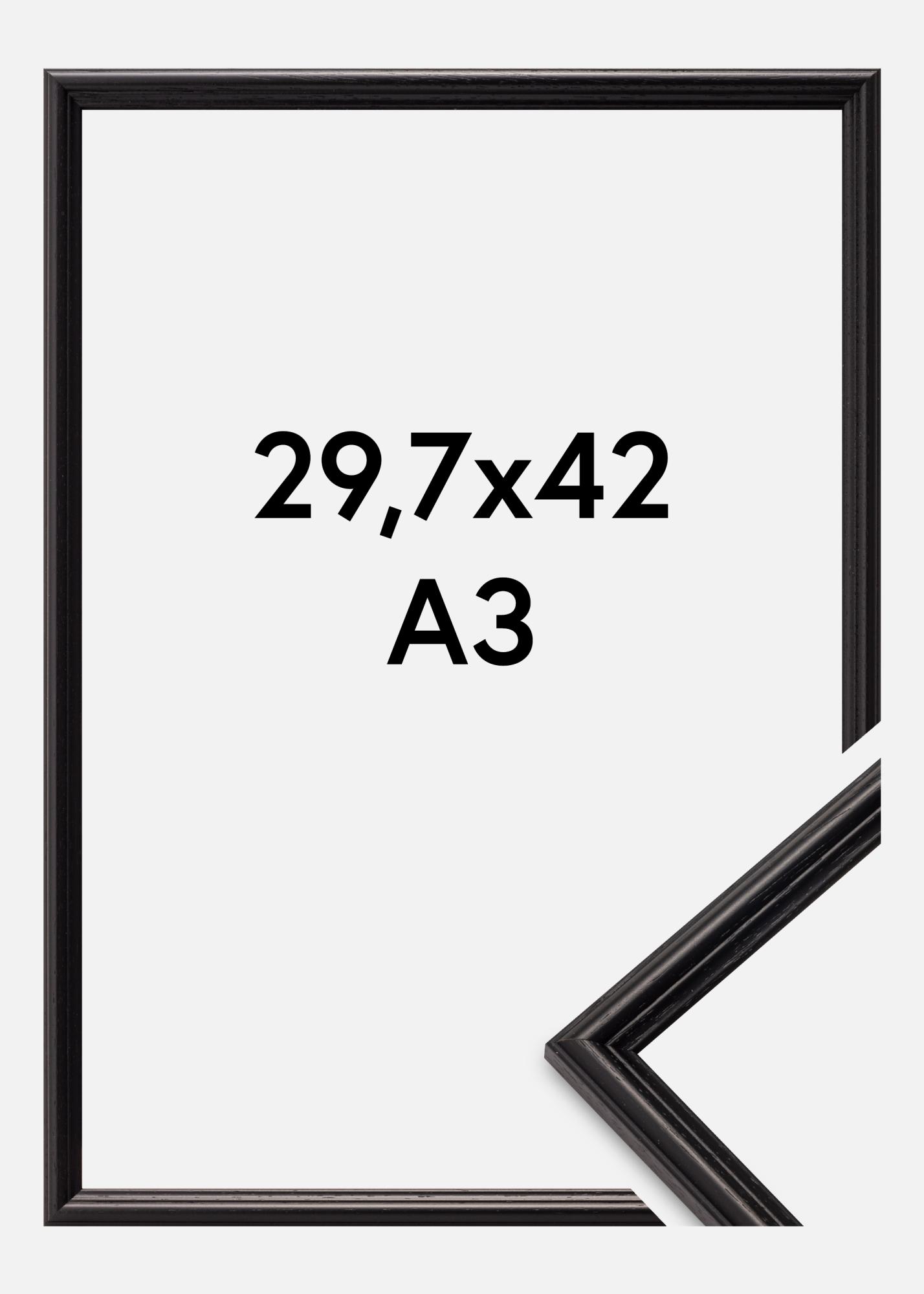 Descoperiți rama foto elegantă și rafinată de dimensiunea 29,7x42 cm (A3), perfectă pentru a evidenția fotografiile sau operele de artă preferate. Această ramă este fabricată din lemn de ayos robust și are o culoare negru intens cu o finisare fină vopsită care oferă o impresie sofisticată în fiecare cameră.