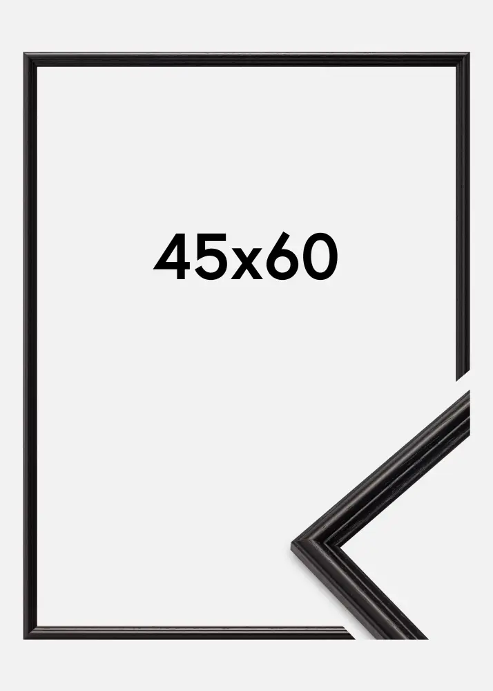Descoperiți eleganța și simplitatea cu rama noastră foto stilată de dimensiunea 45x60 cm. Această ramă pentru tablouri este perfectă pentru a evidenția fotografiile sau lucrările de artă preferate. Suprafața neagră, vopsită, oferă o notă clasică ce se potrivește în orice casă.