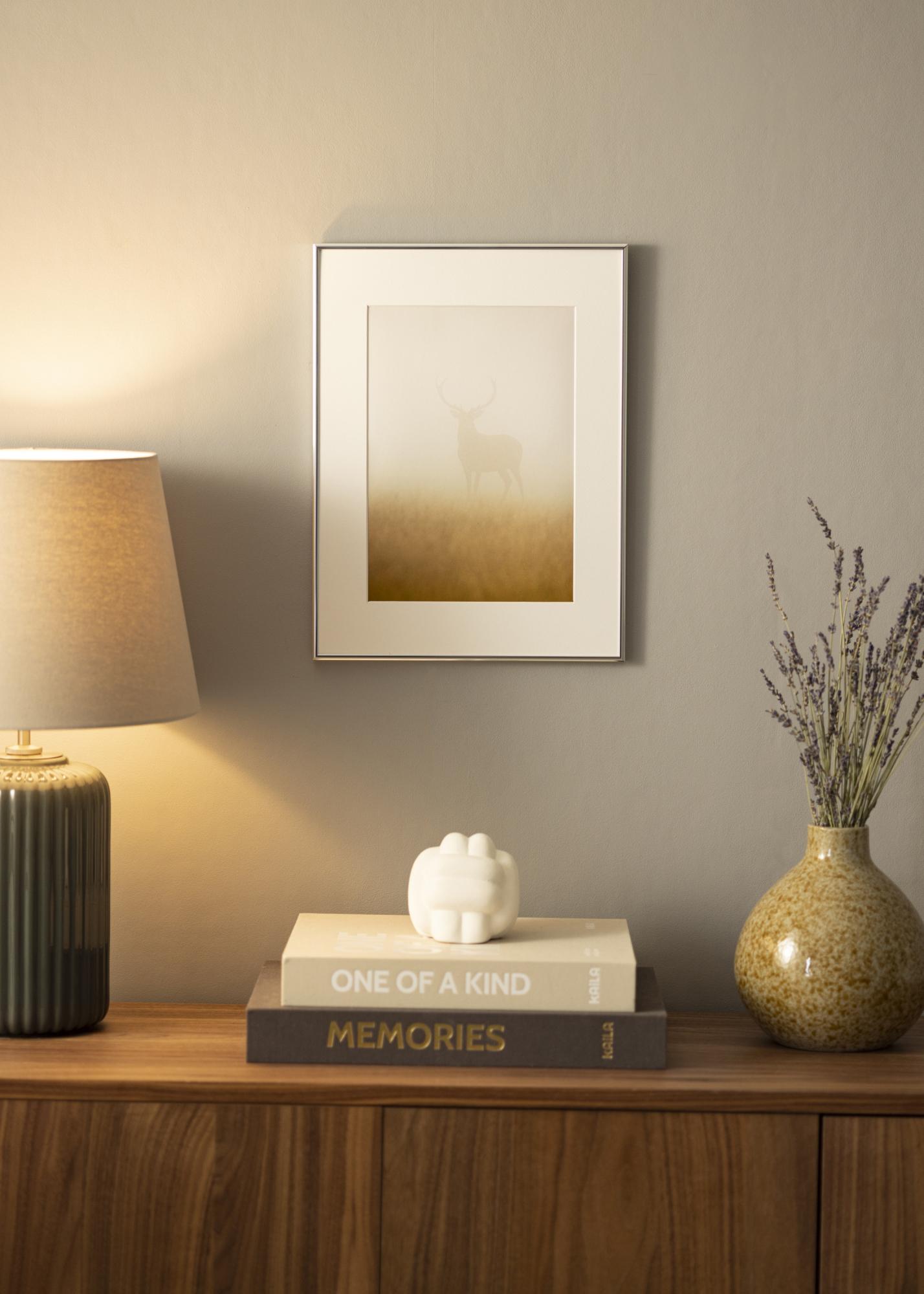 Ibiza este una dintre cele mai înguste rame ale noastre, cu o lățime de doar 5,9 mm și o finisare argintie lucioasă, cu laturi periate. Perfectă când cauți o ramă cu adevărat subțire care să pună întregul accent pe motiv.