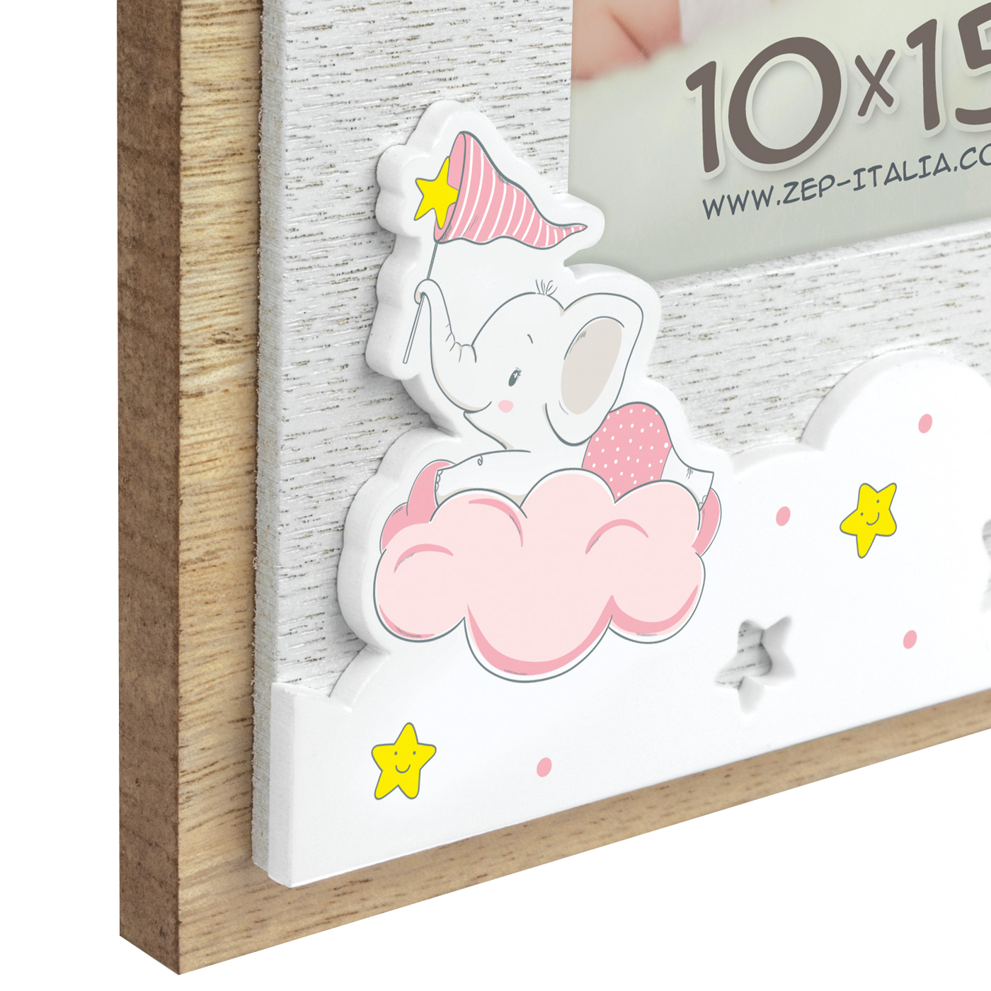 Transformați-vă casa într-un perete de galerie personalizat cu această ramă foto fermecătoare care evidențiază micile momente ale vieții. Cu dimensiunile de 10x15 cm, este perfectă pentru a păstra amintirile celor mai mici. Această ramă de tablou este împodobită cu o temă adorabilă pentru copii, inclusiv un elefant drăguț, modele roz și stele mici care împreună creează o atmosferă caldă și iubitoare.