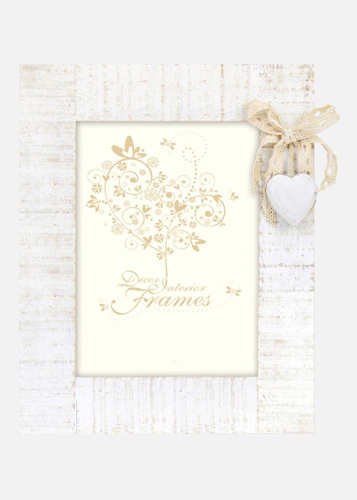 Oferă amintirilor tale un cadru fermecător cu această frumoasă ramă vintage. Cu dimensiunile sale de 10x15 cm, este perfectă pentru a evidenția fotografiile tale preferate cu o notă de nostalgie. Suprafețele sale luminoase sunt completate de o panglică decorativă și o inimă care adaugă un sentiment romantic decorului tău.