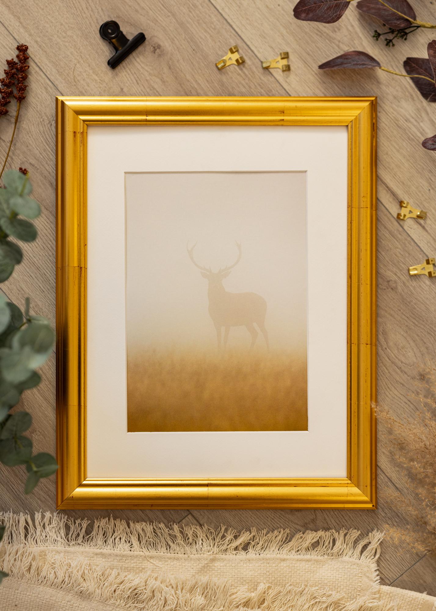 Rama Mars Aur este o ramă de tablou elegantă și versatilă, fabricată în propriul nostru atelier de rame. Cu culoarea sa aurie și suprafața antichizată, această ramă foto oferă o frumusețe atemporală care îmbunătățește orice operă de artă sau fotografie. Profilul său ușor curbat și crăpăturile subtile îi conferă ramei o autentică senzație vintage, în timp ce micile detalii întunecate îi adaugă un caracter unic.