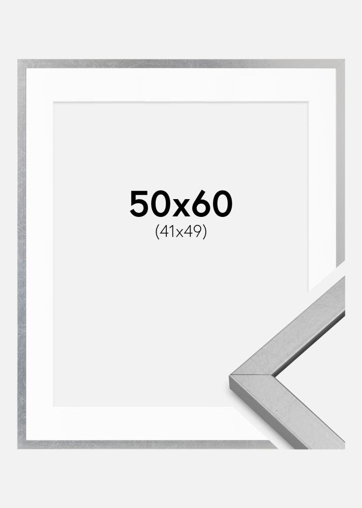 Ramă Minerva Argint 50x60 cm - Paspartuuri Alb 42x50 cm