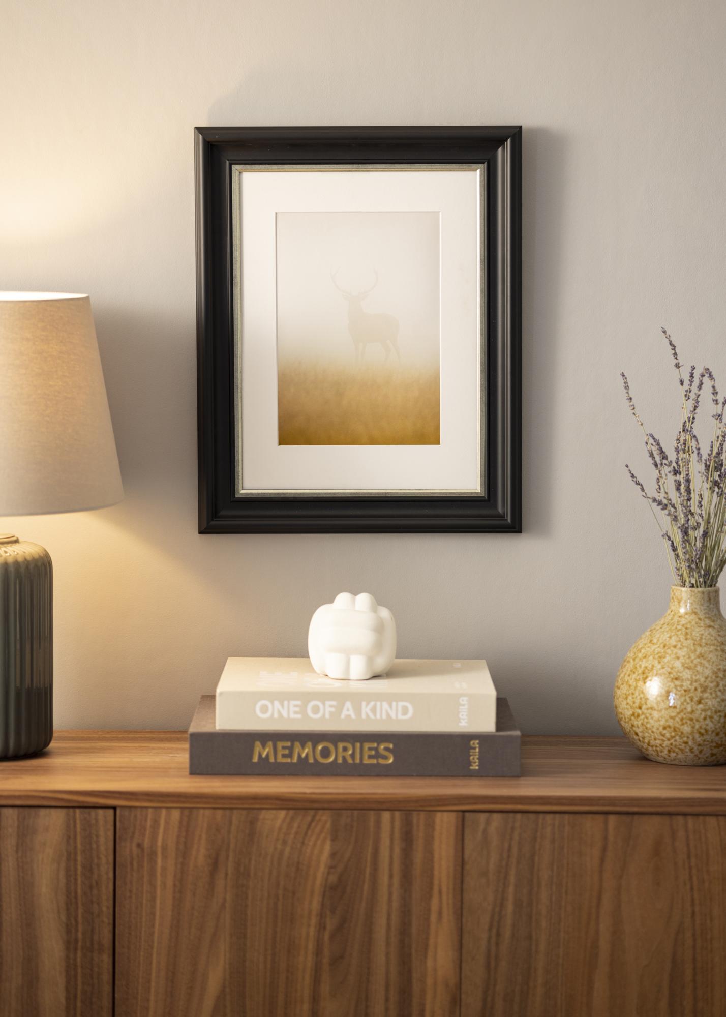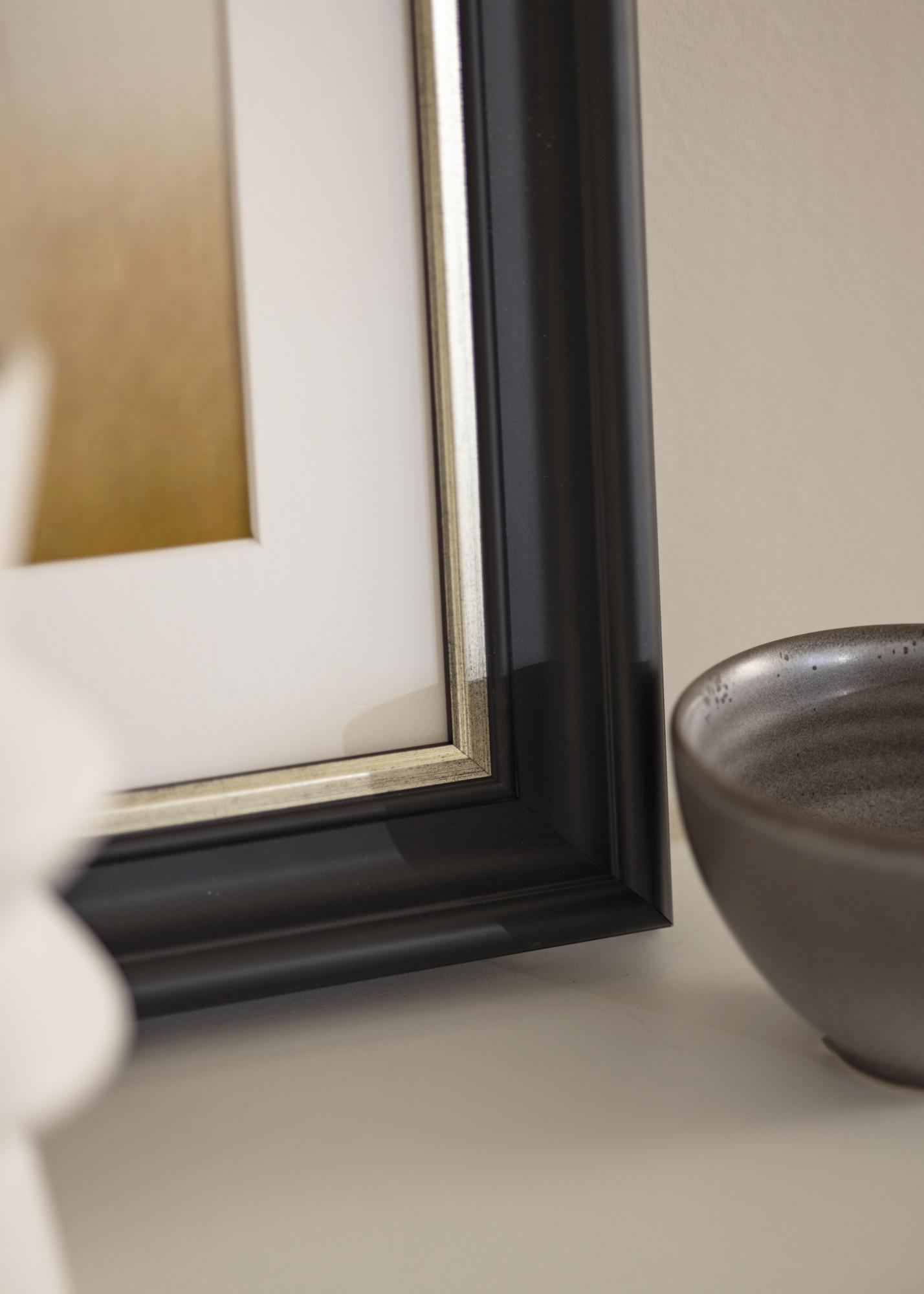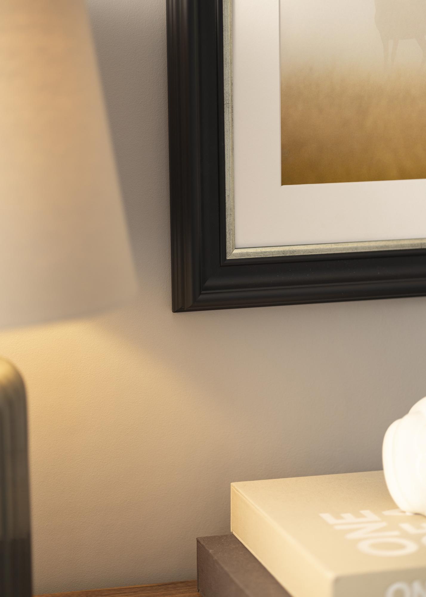 Mora Premium Negru-Argintiu este una dintre cele mai frumoase rame foto ale noastre. Fabricată din lemn din pădurile noastre frumoase suedeze și asamblată în propriul nostru atelier de rame. Acest lucru ne permite să garantăm o calitate deosebită. Rama are un profil larg și elegant negru de 57 mm, cu un contur subțire argintiu periat lângă motiv. Perfectă pentru cele mai valoroase imagini ale tale!