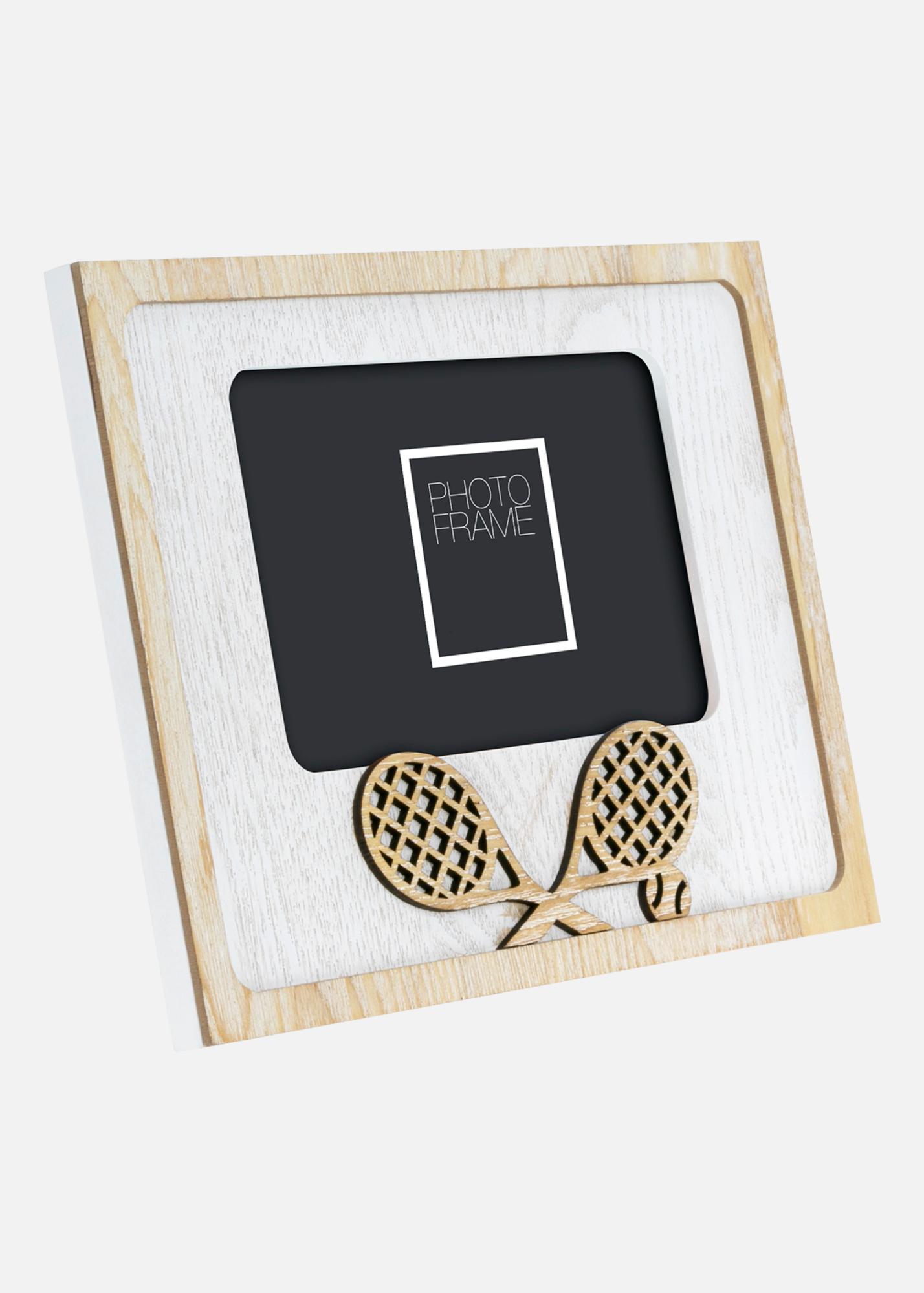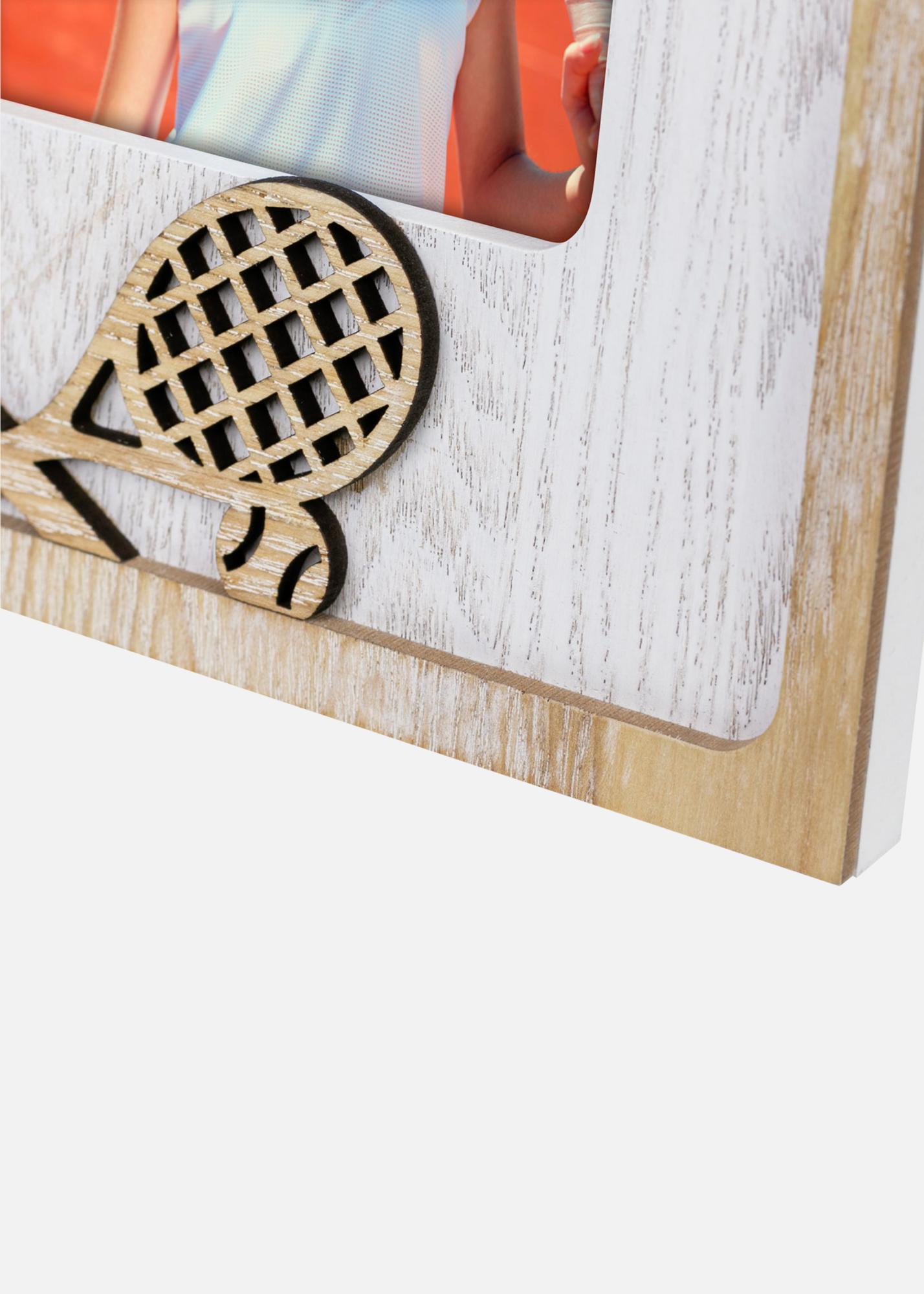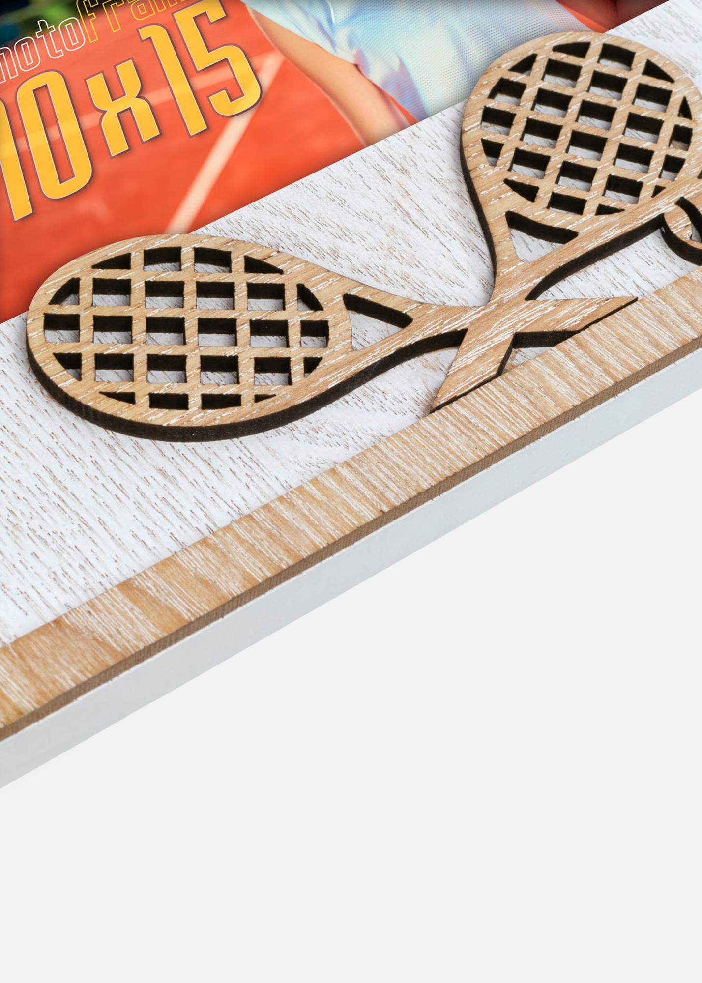 O ramă foto inspirată din sport cu temă de tenis. Decorată cu rachete de tenis decupate, perfectă pentru încadrărea amintirilor de pe terenul de tenis sau activități sportive. Potrivită pentru dimensiunea imaginii 10x15 cm.