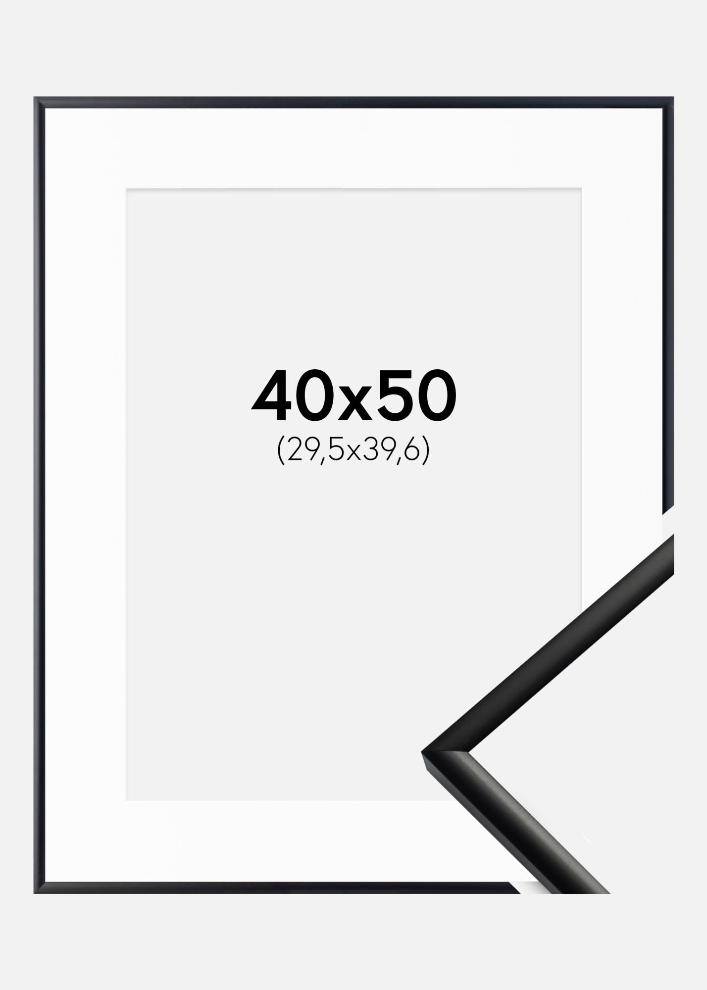 Rama are un profil subțire cu o lățime de doar 9,8 mm și o adâncime de 16,5 mm, oferind un aspect elegant și modern. Finisajul mat negru completează passepartout-ul alb inclus, creând un contrast frumos și atrăgând atenția spre imaginea din centru.