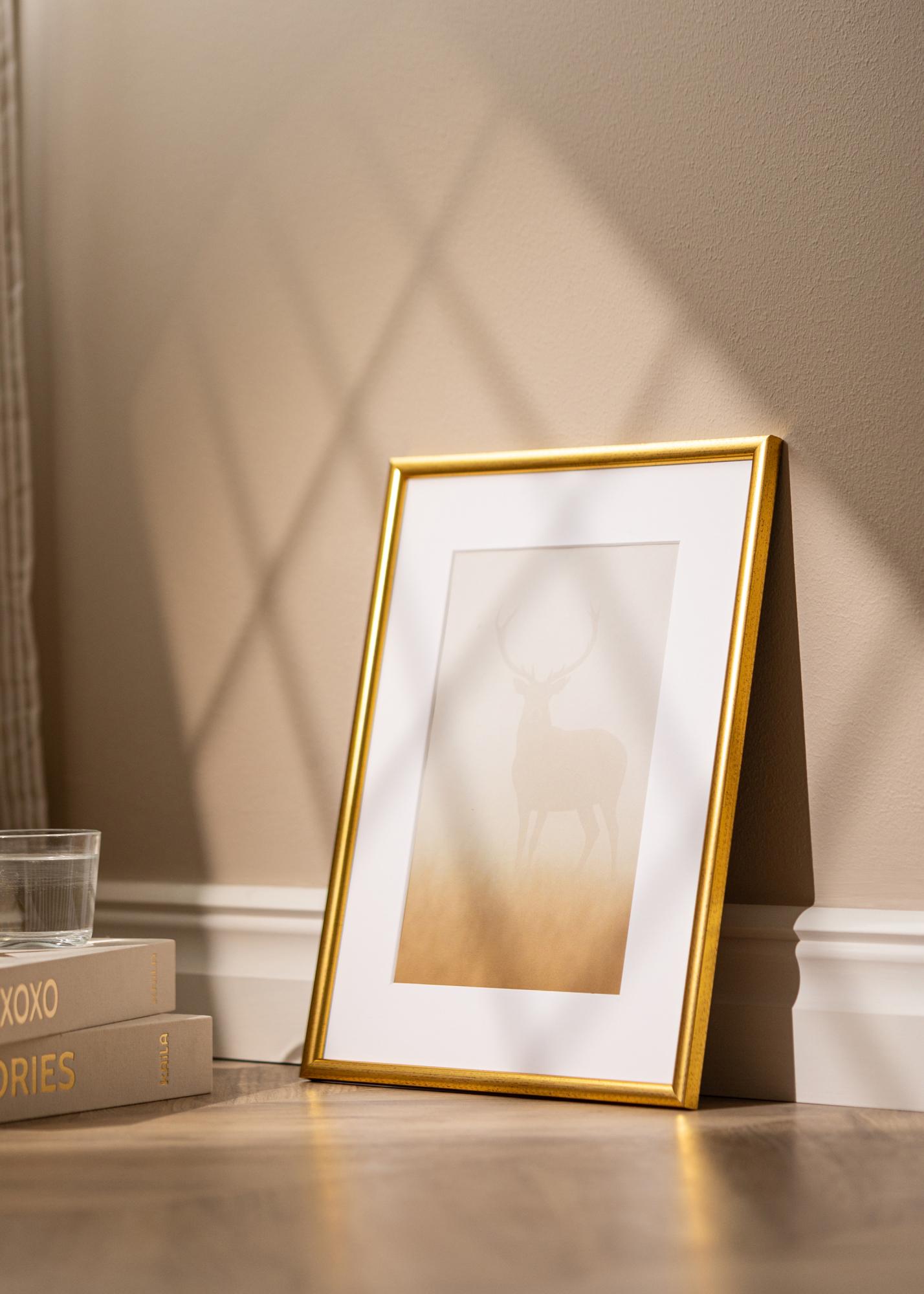 Newline Guld are un profil de ramă subțire (15 mm) care concentrează atenția asupra motivului din cadru. Rama are un profil auriu pătate cu roșu, care îi conferă un aspect demodat.