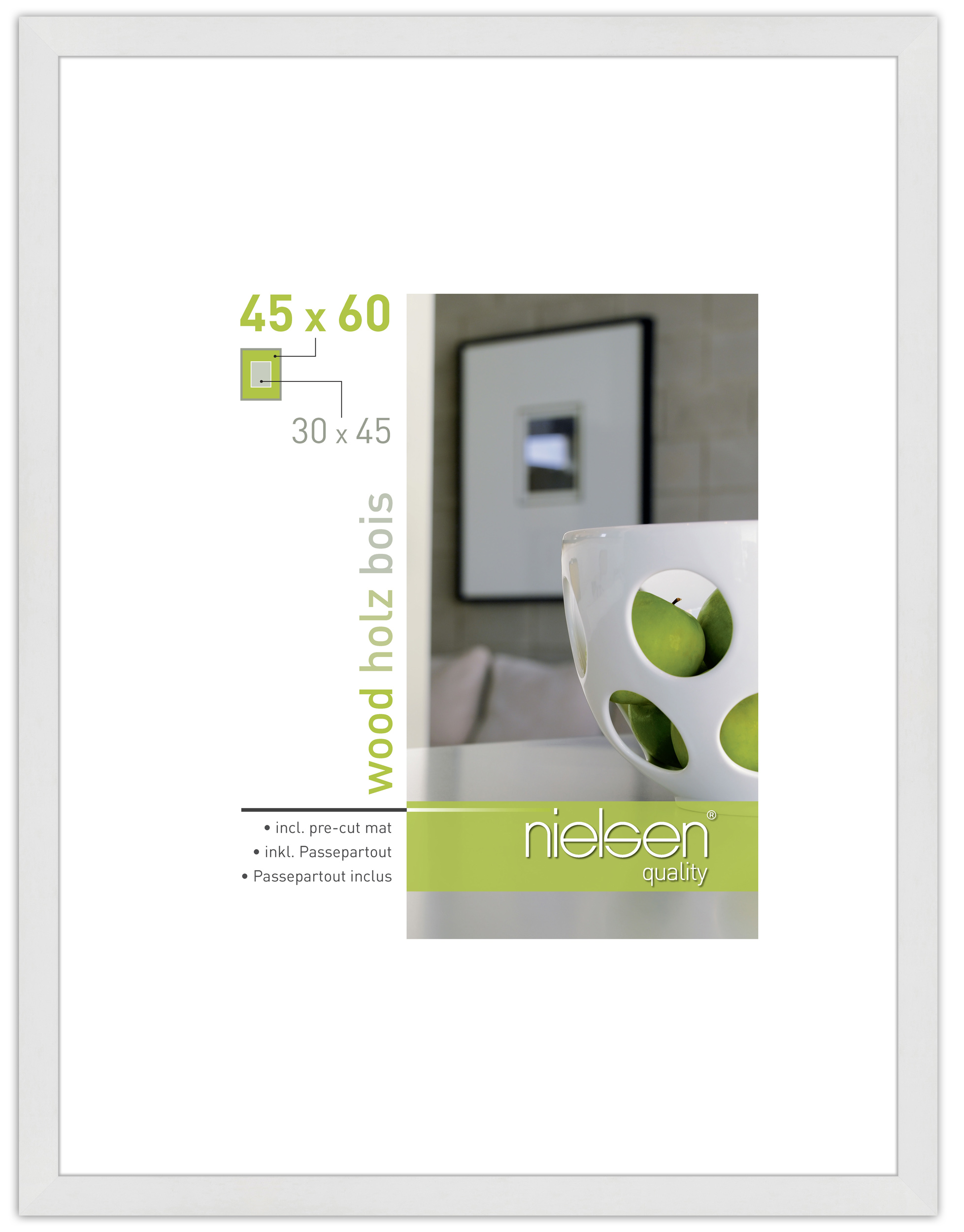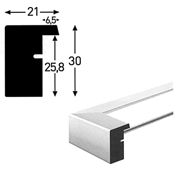 Aceasta este o ramă foto elegantă albă cu un profil clasic pătrat. Cadrul, cu lățimea de 20 mm, este lăcuit și are un finisaj lucios, oferind un aspect modern care se potrivește bine cu multe motive diferite. Cadrul are o adâncime de 30 mm, ceea ce face ca rama să iasă puțin din perete pentru a crea un efect 3D ușor. Rama are o adâncime interioară generoasă (adâncimea canelurii) de 25,8 mm. Acest lucru oferă suficient spațiu pentru a completa rama cu un passepartout – și, de fapt, rama vine efectiv cu un passepartout!