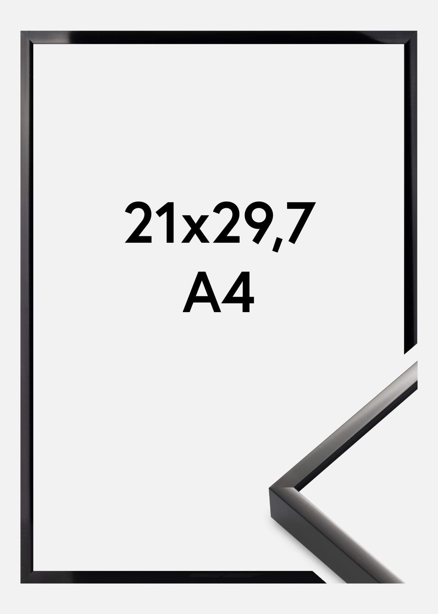 Ramă premium elegantă cu o listă subțire neagră lucioasă care se potrivește perfect într-un interior modern și stilat. Suprafața ramei și senzația minimalistă a designului suplu fac ca aceasta să fie ideală pentru utilizarea cu postere grafice și fotografii alb-negru. Rama pentru tablouri este fabricată din aluminiu și este disponibilă în multe dimensiuni diferite, ceea ce o face o opțiune bună când doriți să creați un perete de tablouri cu imagini în mai multe formate diferite, care sunt unificate prin alegerea ramei.