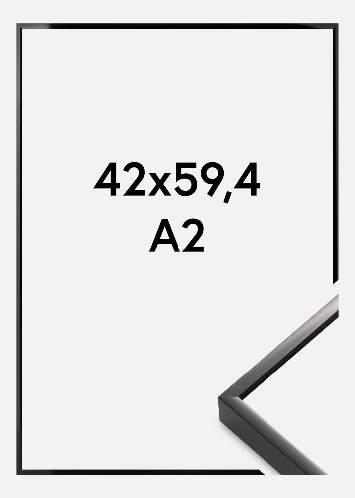 Ramă premium elegantă cu o listă subțire neagră strălucitoare care se potrivește perfect într-un interior modern și stilat. Suprafața ramei și senzația minimalistă a designului său suplu fac ca aceasta să fie ideală pentru a fi folosită cu afișe grafice și fotografii alb-negru. Rama pentru tablouri este fabricată din aluminiu și este disponibilă în multe dimensiuni diferite, ceea ce o face o opțiune bună când doriți să creați un perete cu imagini în mai multe formate diferite, unite prin alegerea ramei.
