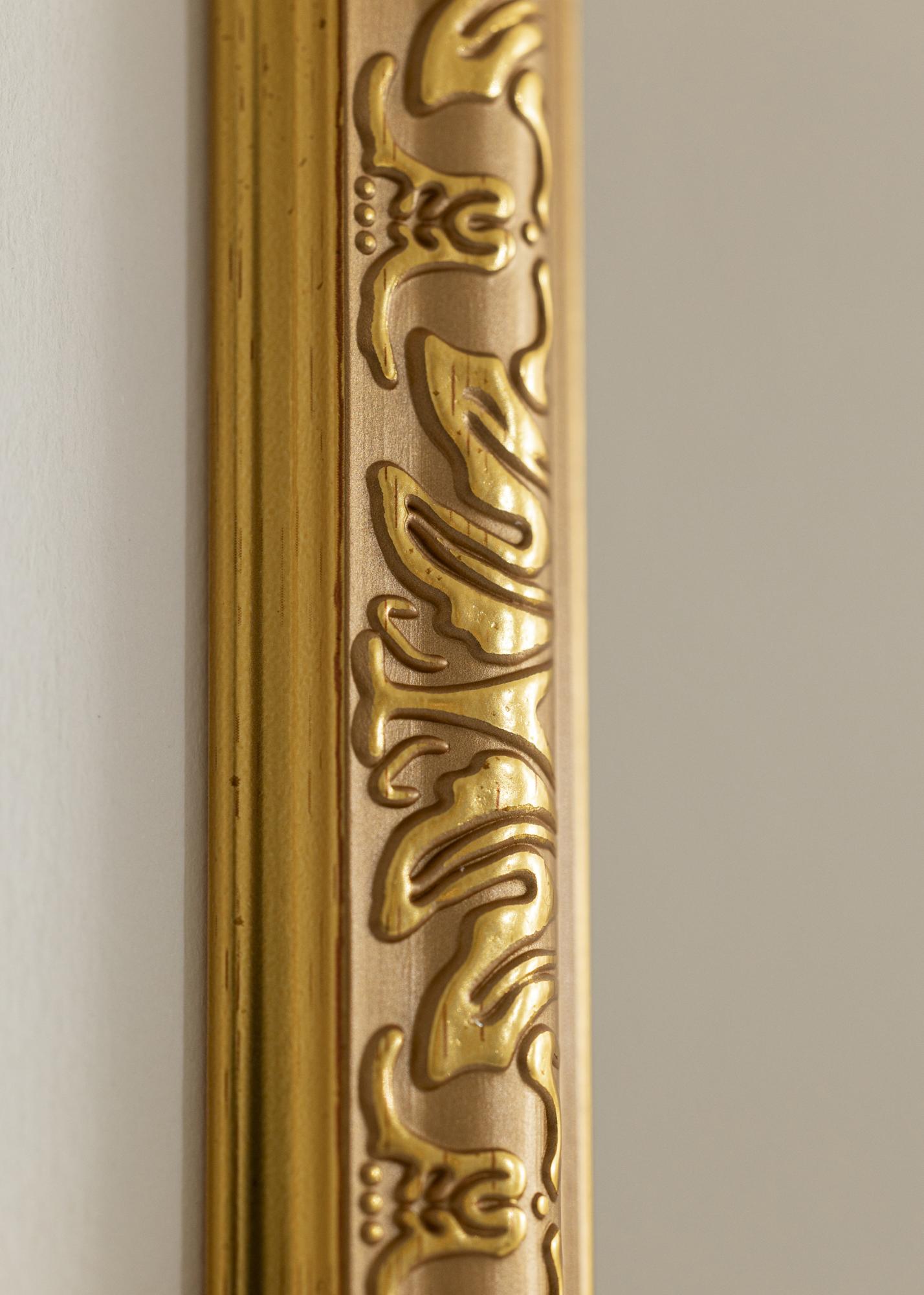 Nostalgia este o ramă aurie elegantă în stil retro cu ornamente fine. Potrivită atunci când cauți o ramă retro lată pentru cele mai frumoase fotografii ale tale.