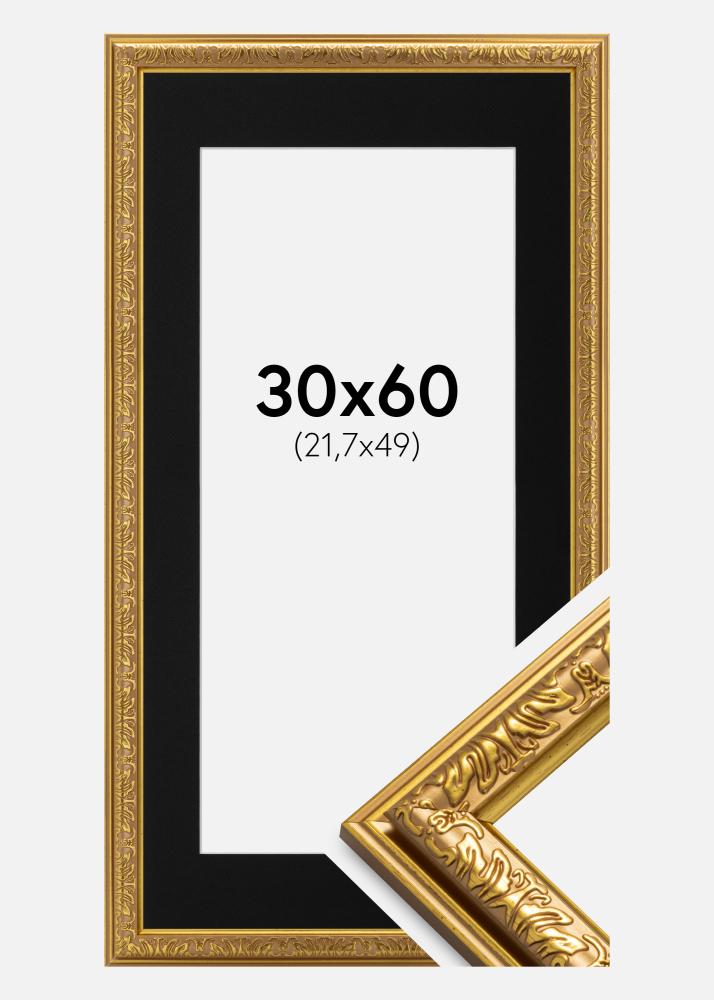 Ramă Nostalgia Auriu 30x60 cm - Paspartu Negru 22,7x50 cm