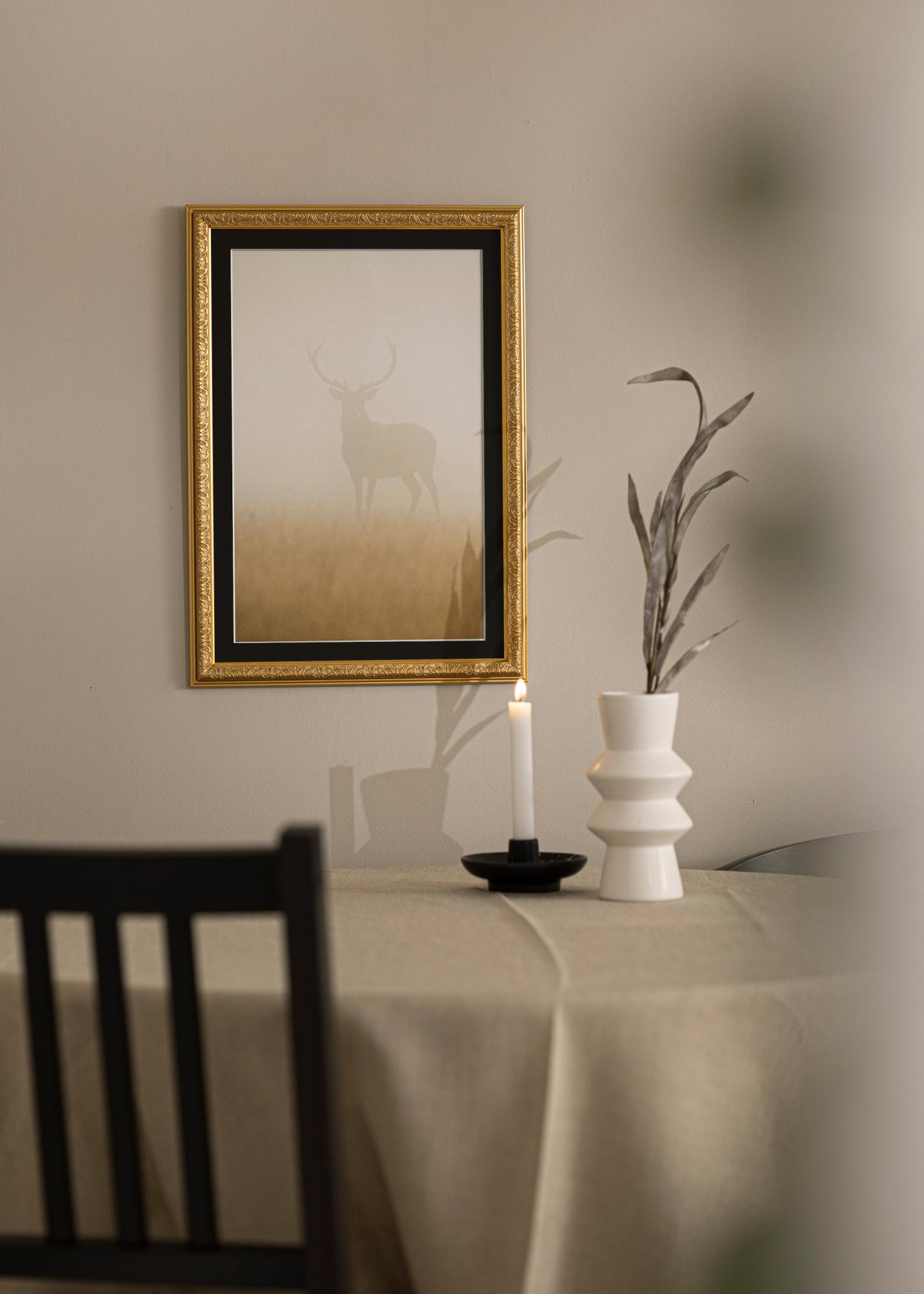 Oferiți atenția meritată fotografiilor dvs. preferate cu o ramă elegantă aurie, completă cu paspartú negru. Această combinație sofisticată evidențiază contrastul și profunzimea fotografiei sau lucrării dvs. de artă, în timp ce paspartúul negru creează o pauză vizuală care atrage privirea spectactorului către imagine. Tonul aurit strălucitor al ramei adaugă o notă luxoasă decorului dvs. și se potrivește perfect atât în medii clasice, cât și moderne.