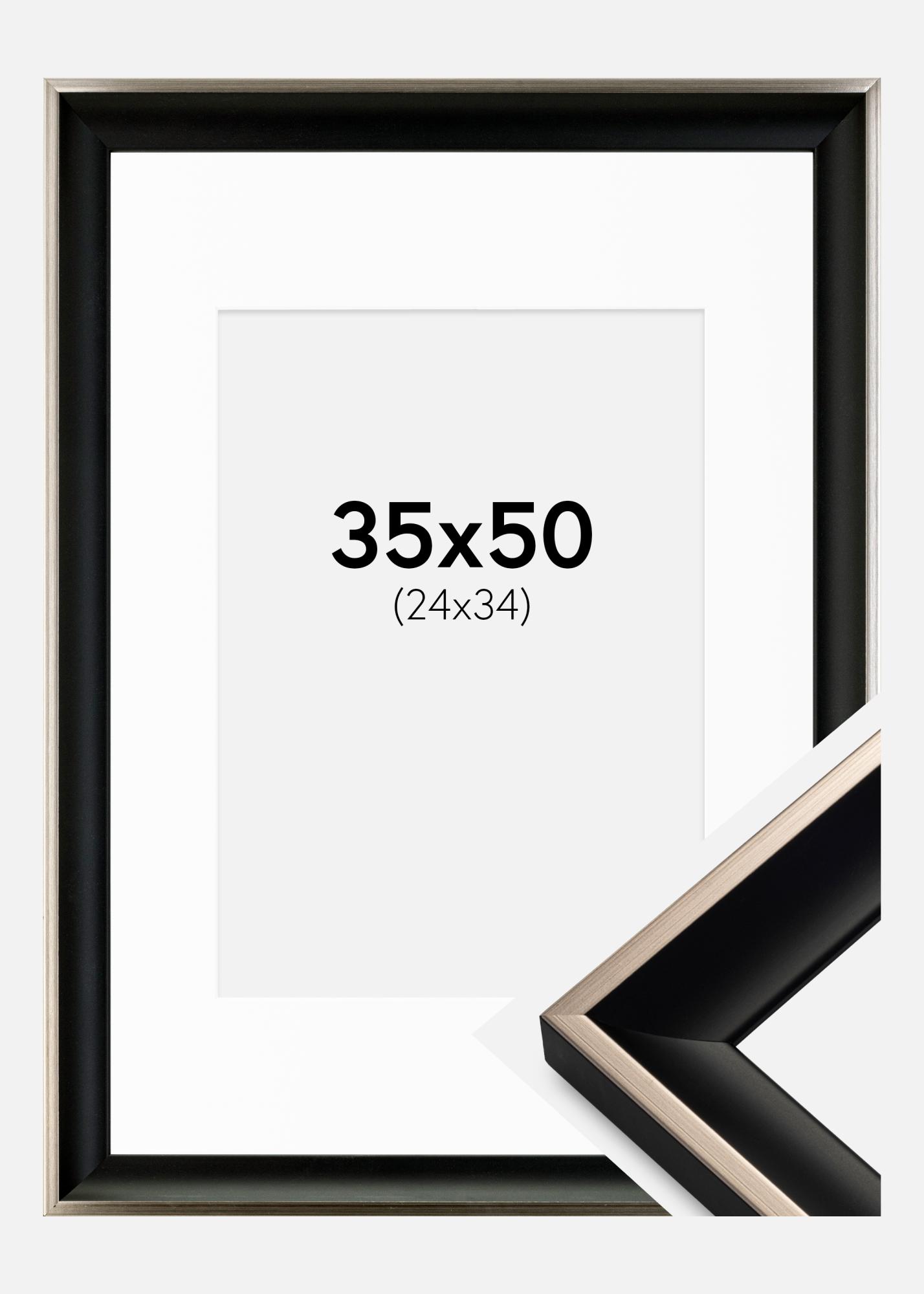 Ramă Öjaren Negru-Argintiu 35x50 cm - Paspartu Alb 25x35 cm