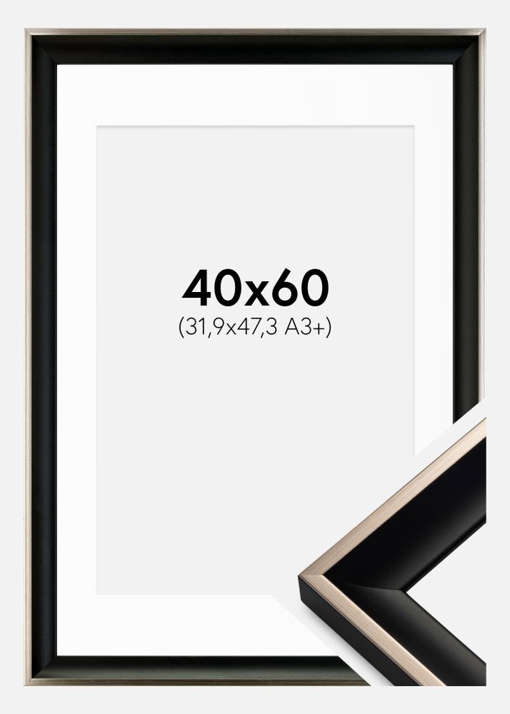 Ramă Öjaren Negru-Argintiu 40x60 cm - Paspartu Alb 32,9x48,3 cm (A3+)