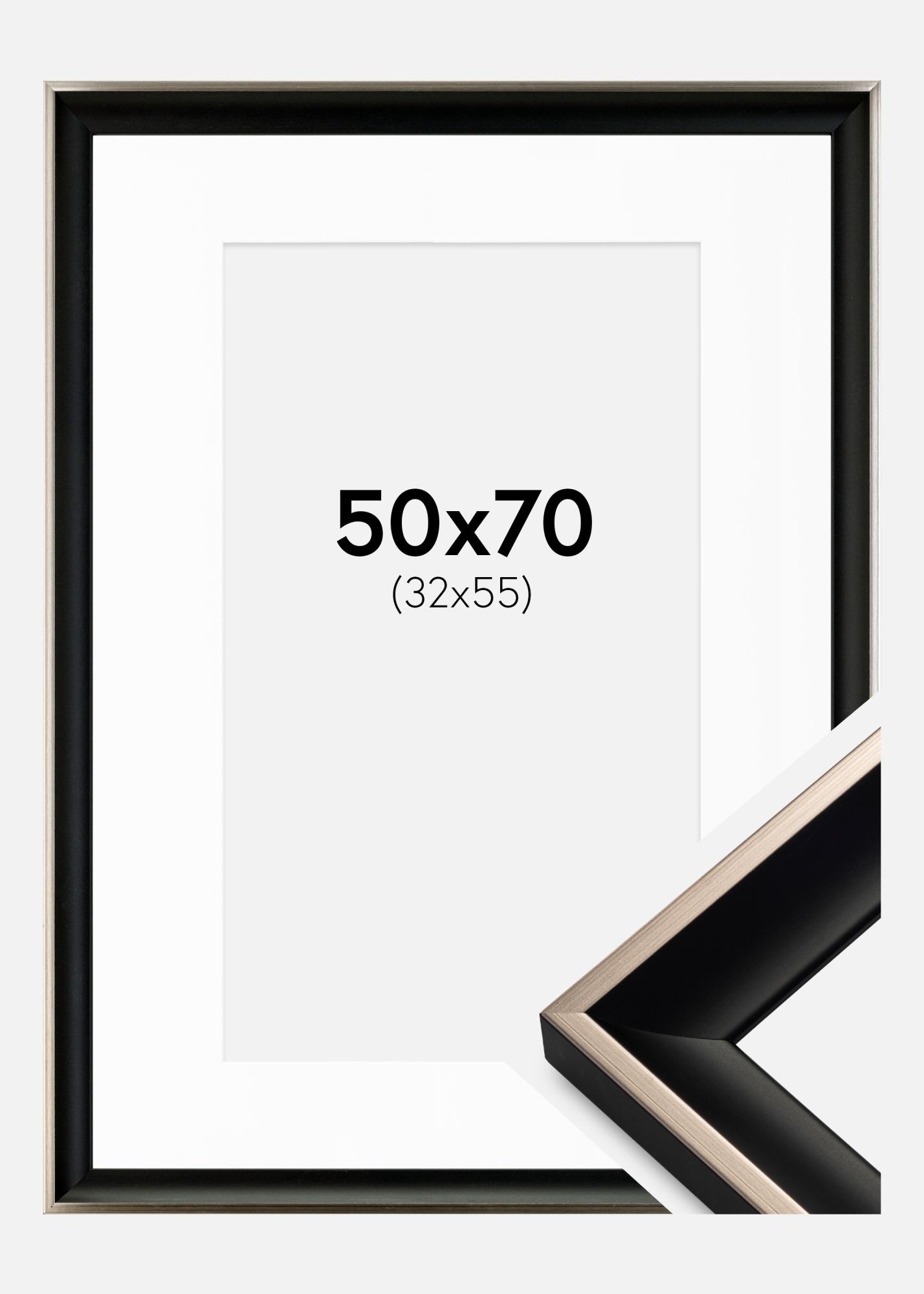 Ramă Öjaren Negru-Argintiu 50x70 cm - Paspartu Alb 33x56 cm
