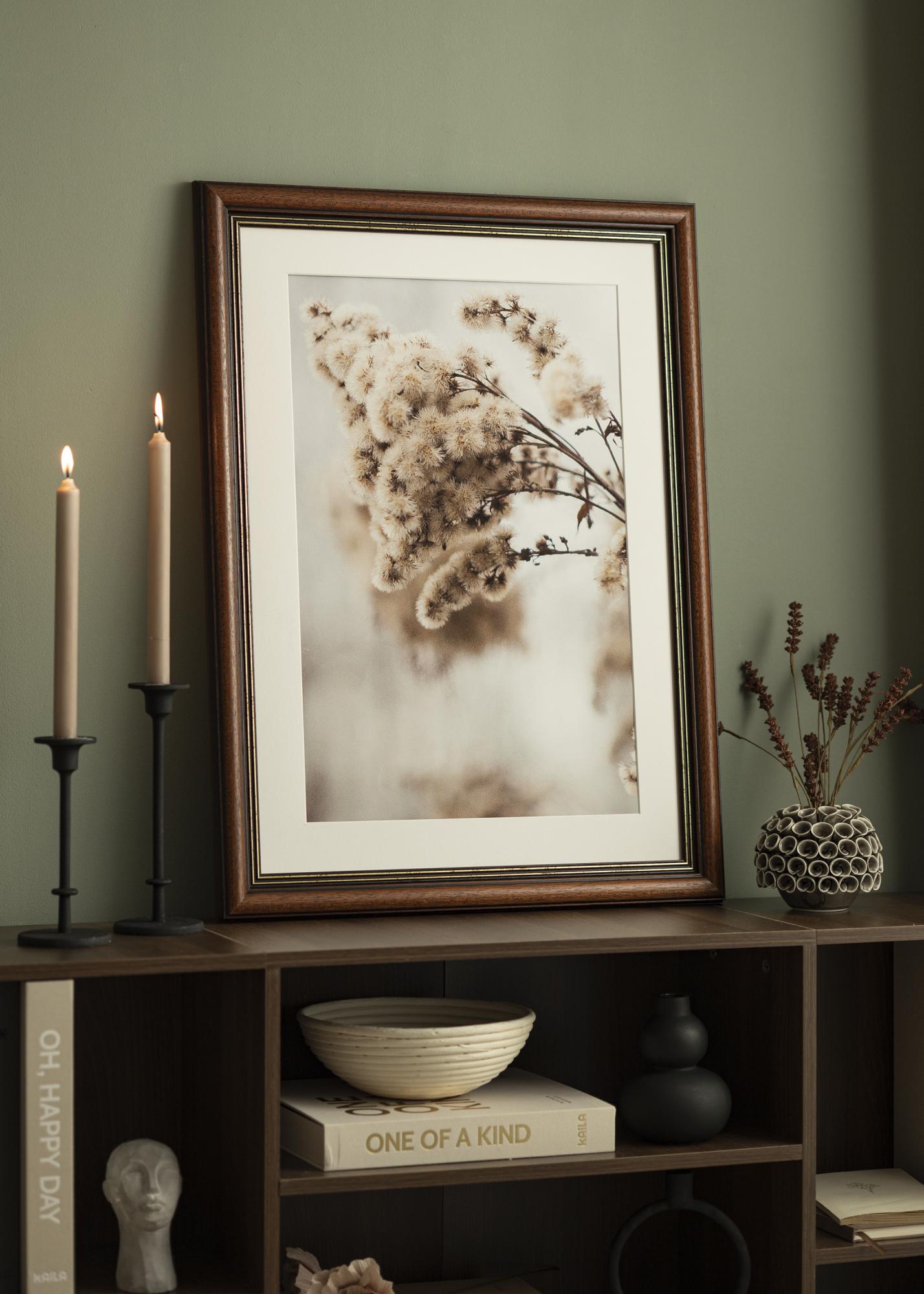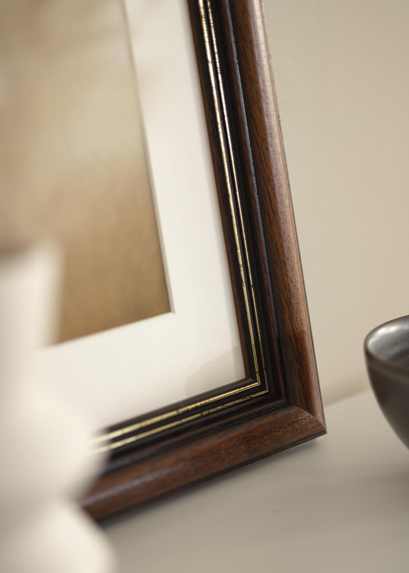 Old Retro Acril încadrează o frumoasă ramă de tablou într-un design clasic cu un profil elegant cu accente negre. Cel mai în interior, aproape de motiv, se află două linii aurii care oferă motivului tău o încadrare luxoasă. Rama de tablou are un aspect romantic ”uzat” care întărește și mai mult senzația de exclusivitate, în același timp făcând din ramă un detaliu de decor frumos pe peretele tău.