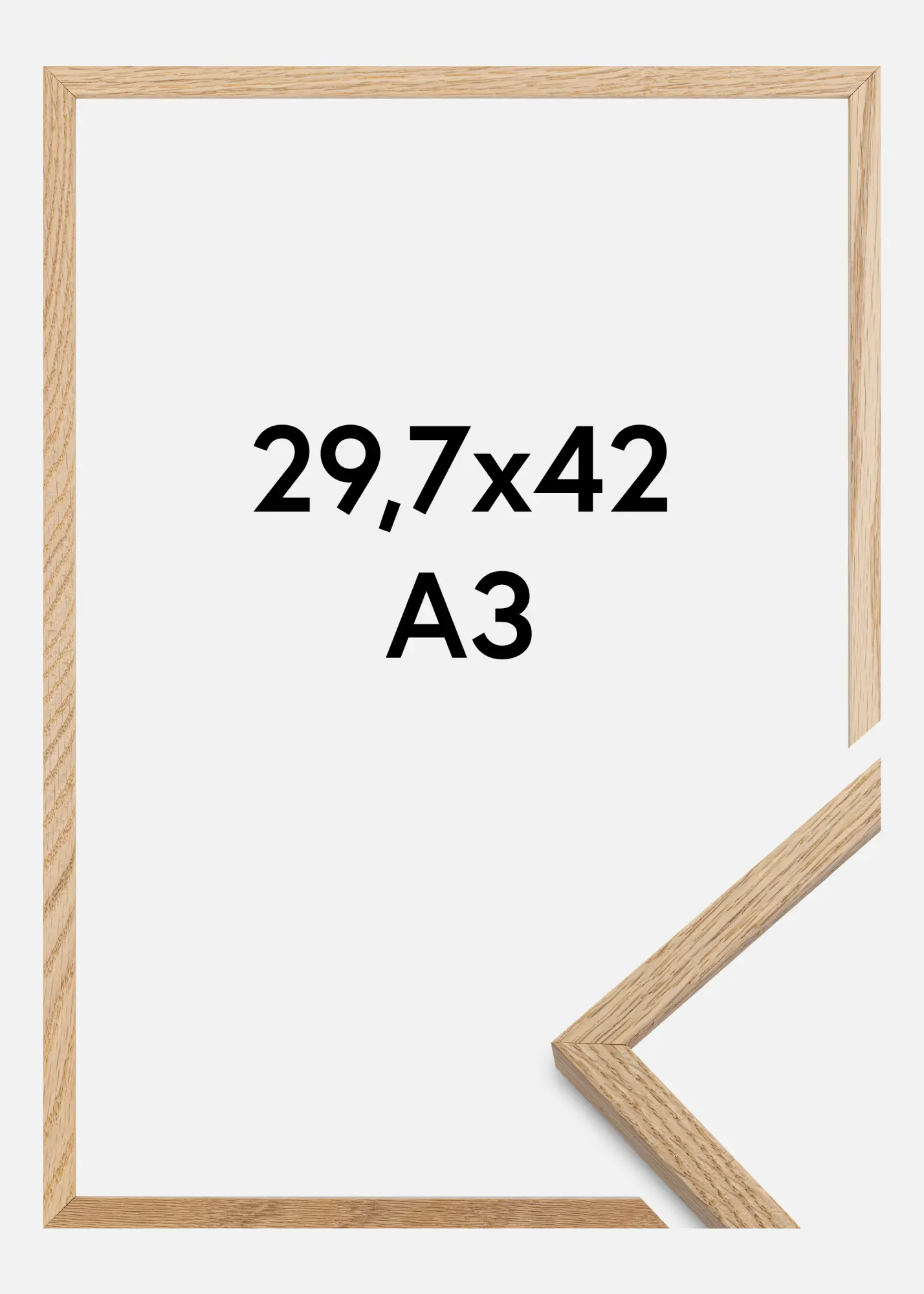 Cadru solid din stejar format A3 cu un profil de ramă pătrat. Rama este livrată cu un sticlă acrilică clară ca cristalul care este indestructibilă, ceea ce conferă în același timp ramei o greutate mai mică.
