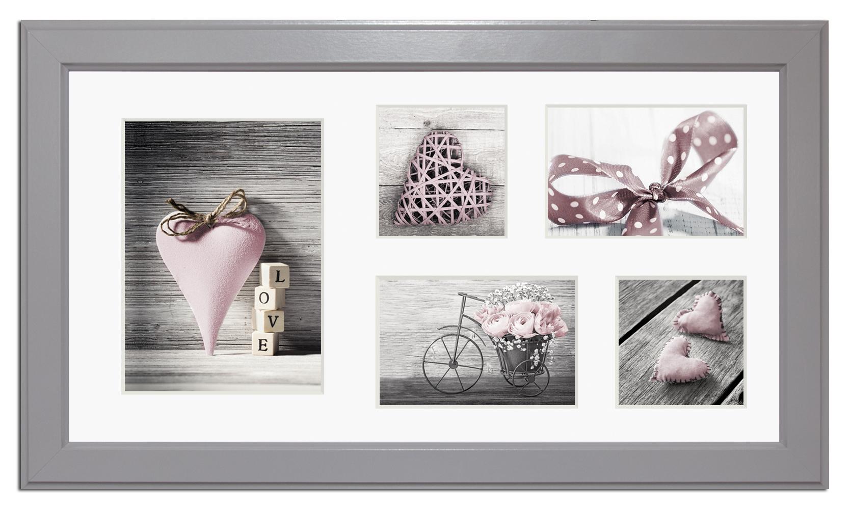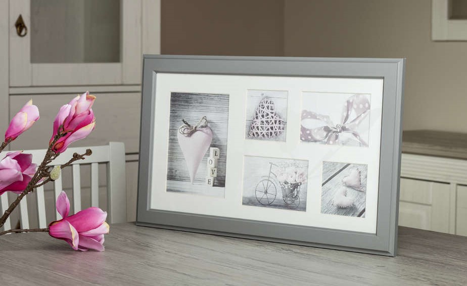 Casa devine mult mai personală cu fotografiile tale preferate pe pereți. Aici avem o ramă colaj luxoasă care este de culoare gri deschis cu un passepartout alb. Deoarece este adaptată pentru fotografii de dimensiuni variate, oferă o impresie extra-vie. Umple-o cu plăcere cu imagini care urmează aceeași temă pentru o unitate frumoasă.