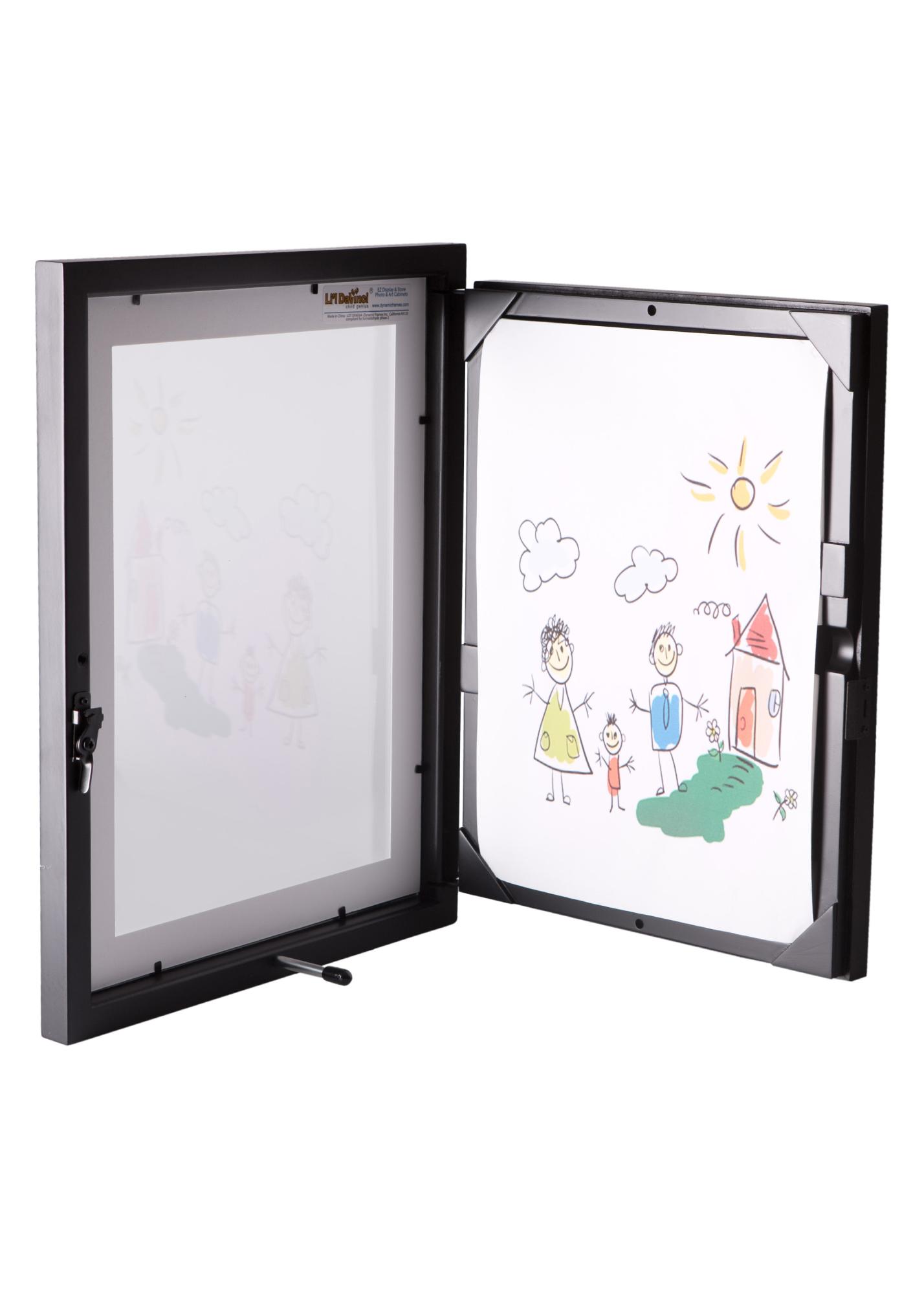 Ramă simplă și convenabilă pentru desene, de mărime A3. Perfectă pentru toate desenele copiilor. Schimbați cu ușurință desenele din ramă pe măsură ce noi opere de artă sunt create. Rama se deschide cu ușurință din lateral. Ramă pentru desene Da Vinci este o ramă neagră și elegantă și se potrivește peste tot în casă. Aceasta are grijă cu blândețe de desenele copiilor astfel încât acestea să fie păstrate în siguranță. De ce să nu lăsați copilul să se mândrească cu faptul că are imaginile sale înrămate și agățate pe peretele din camera sa? Un cadou perfect de ziua de naștere sau de Crăciun, apreciat de mari și mici. Lăsați desenele, fotografiile sau diplomele să aibă o ramă practică și simplă și să devină parte din decor.