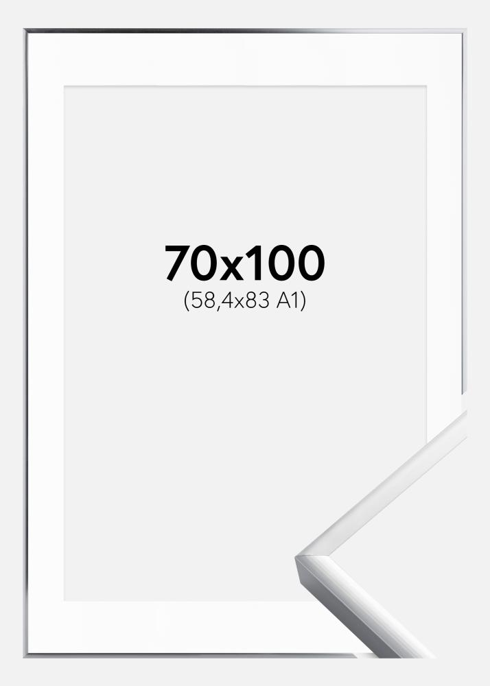 Ramă Poster Frame Aluminum Argintiu 70x100 cm - Paspartu Alb 59,4x84 cm (A1)