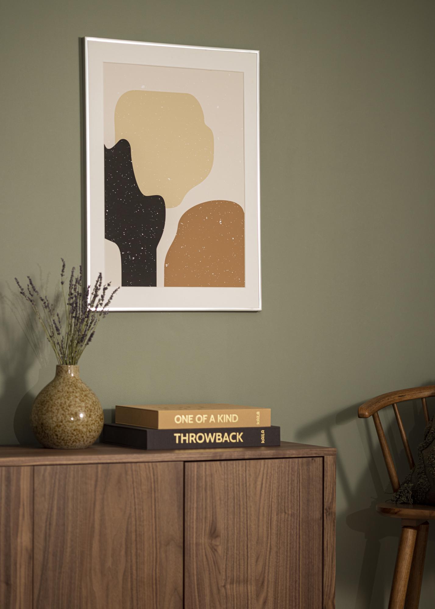 Lățimea subțire a ramei de 9 mm oferă o încadrare fină și discretă, în timp ce adâncimea de 21 mm creează un profil distinctiv care dă un efect tridimensional pe perete. Suprafața lucioasă a ramei reflectă lumina într-un mod subtil, contribuind la evidențierea culorilor și detaliilor imaginii. Culoarea albă a passepartout-ului funcționează ca un fundal neutru care permite ca imaginea dvs. să vorbească de la sine fără a concura cu rama.