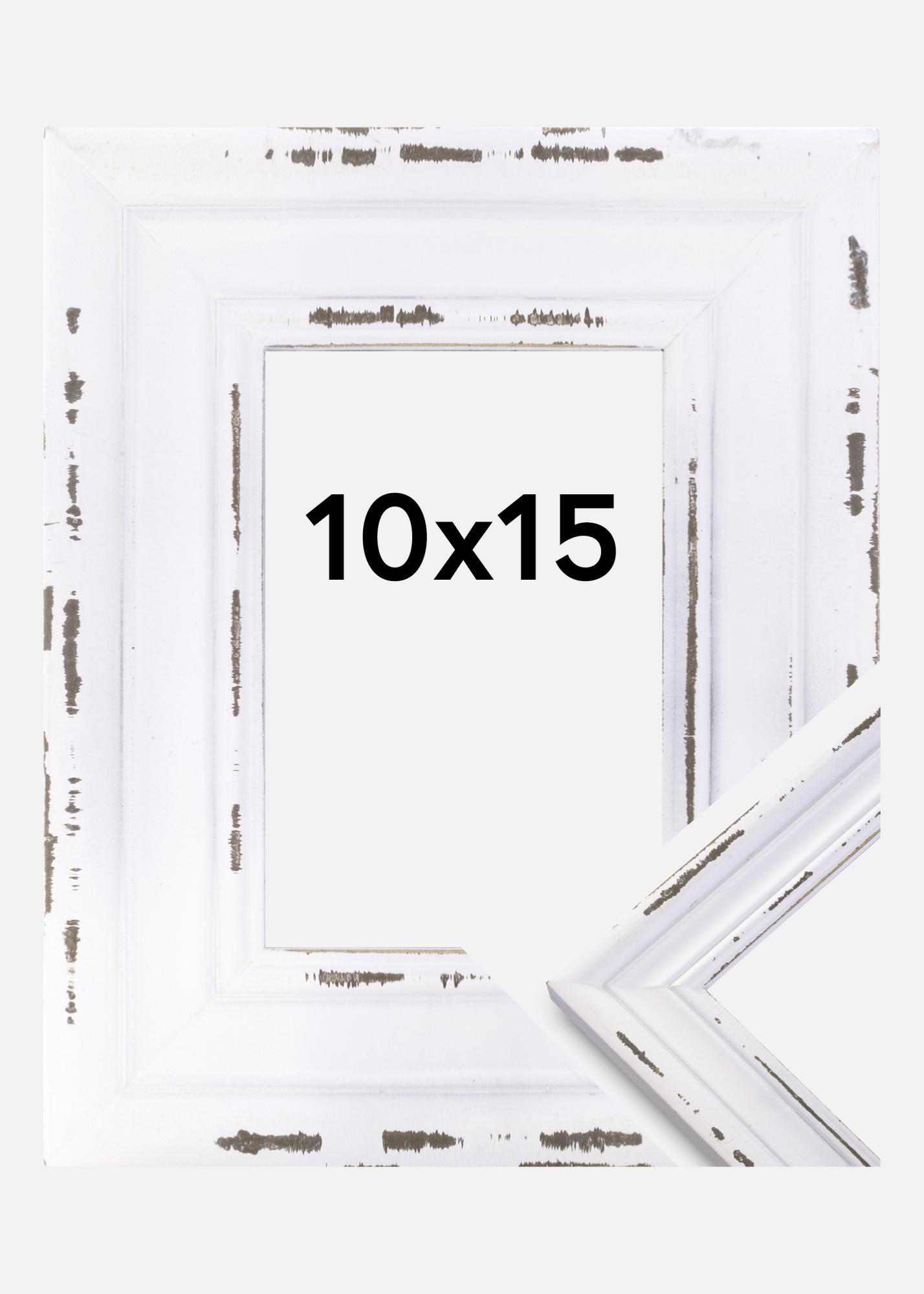 Dacă nu ai norocul să moștenești fotografii de familie vechi înrămate, poți să creezi aceste tablouri pe cont propriu. Aici avem o ramă decorativă uzată care se potrivește perfect pentru acest scop! Rama este albă, cu o listă profilată clasic și părți zgâriate unde lemnul se vede prin ea. Alege dintre mai multe dimensiuni!