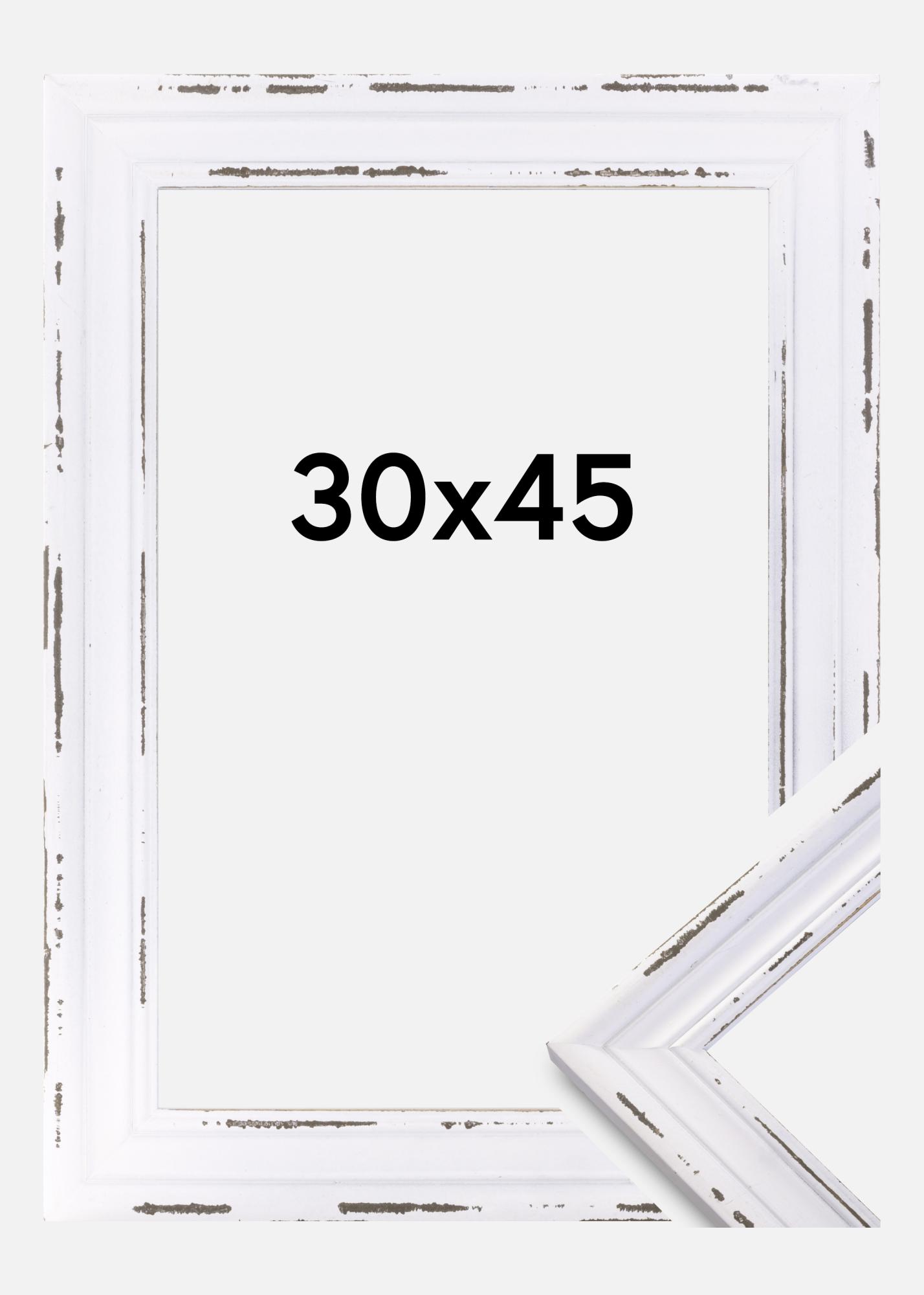 Dacă nu ai norocul să moștenești vechi fotografii de familie înrămate, trebuie să creezi aceste tablouri de unul singur. Aici avem o ramă decorativă uzată care se potrivește perfect pentru acest scop! Rama este albă cu o listă clasic profilată și părți zgâriate unde se vede lemnul. Alege dintre o varietate de dimensiuni!