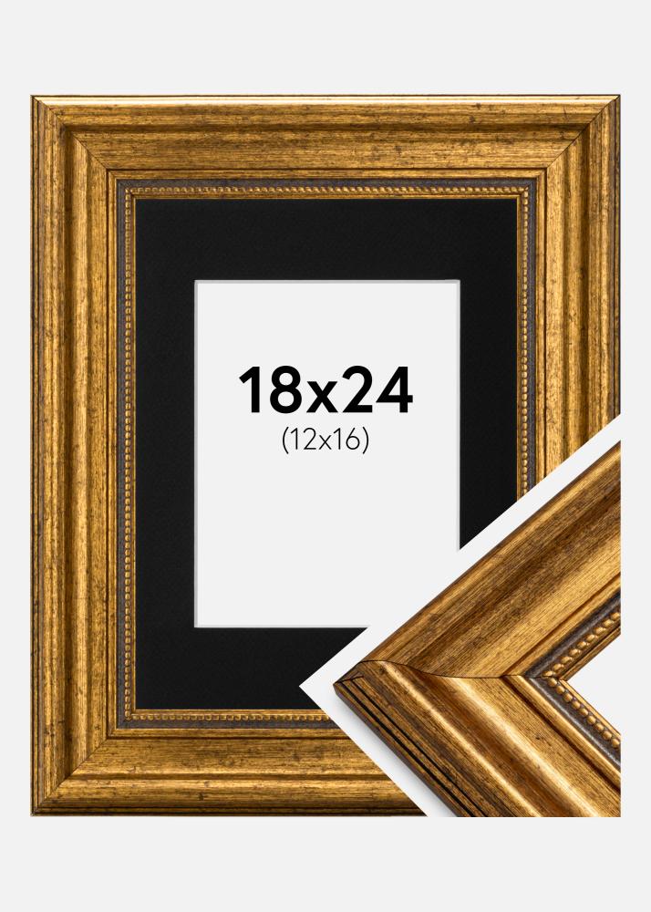 Ramă Rococo Auriu 18x24 cm - Paspartu Negru 13x17 cm