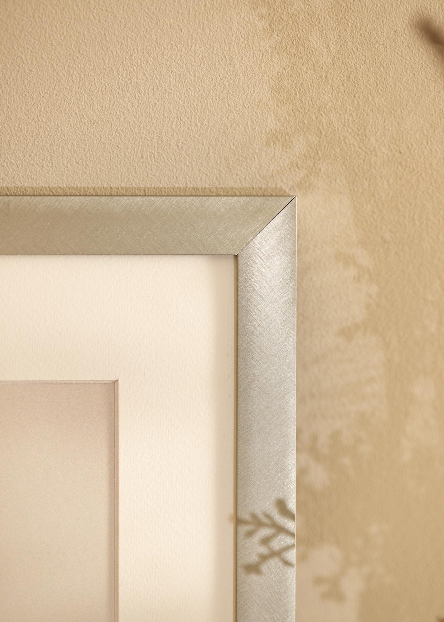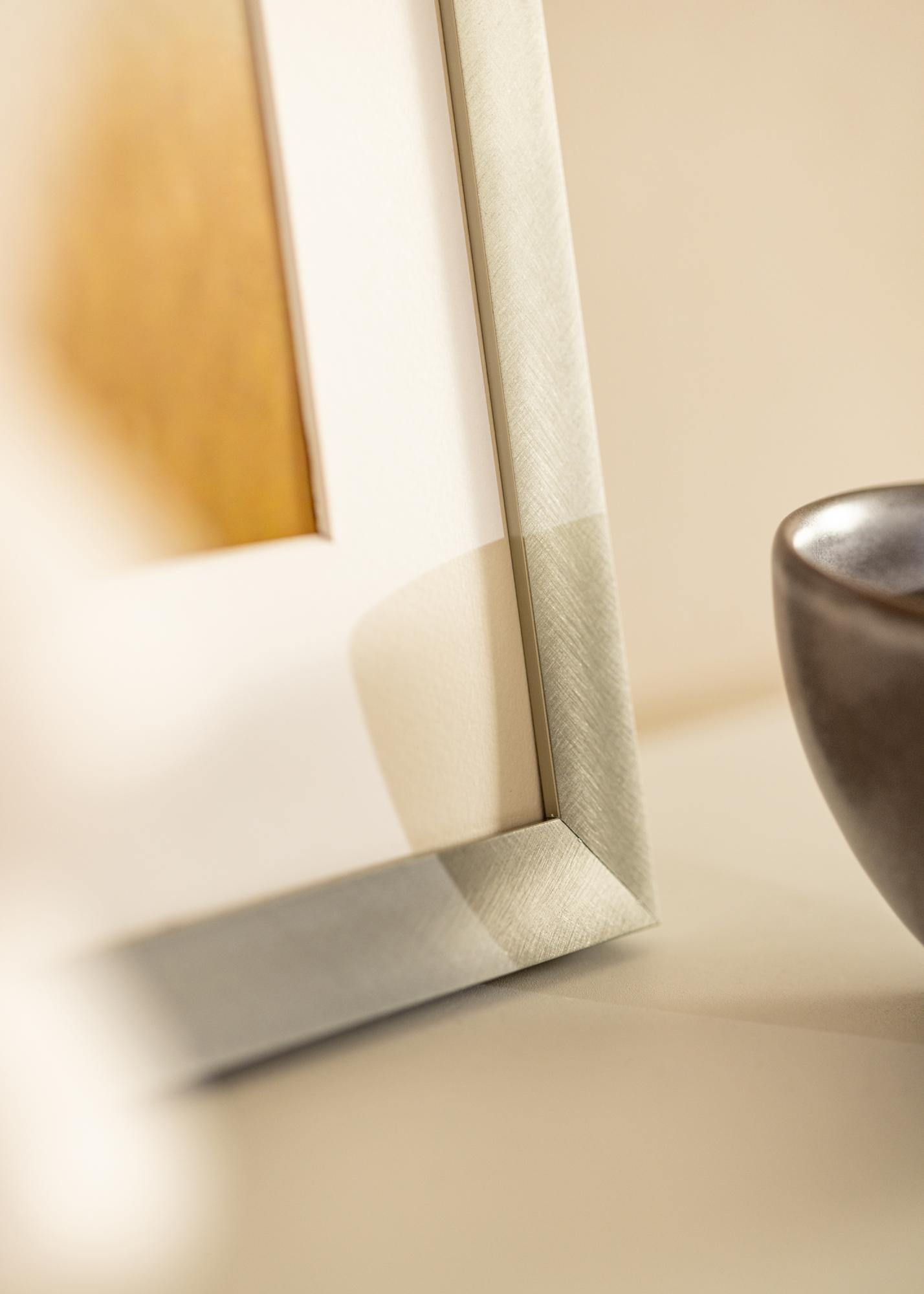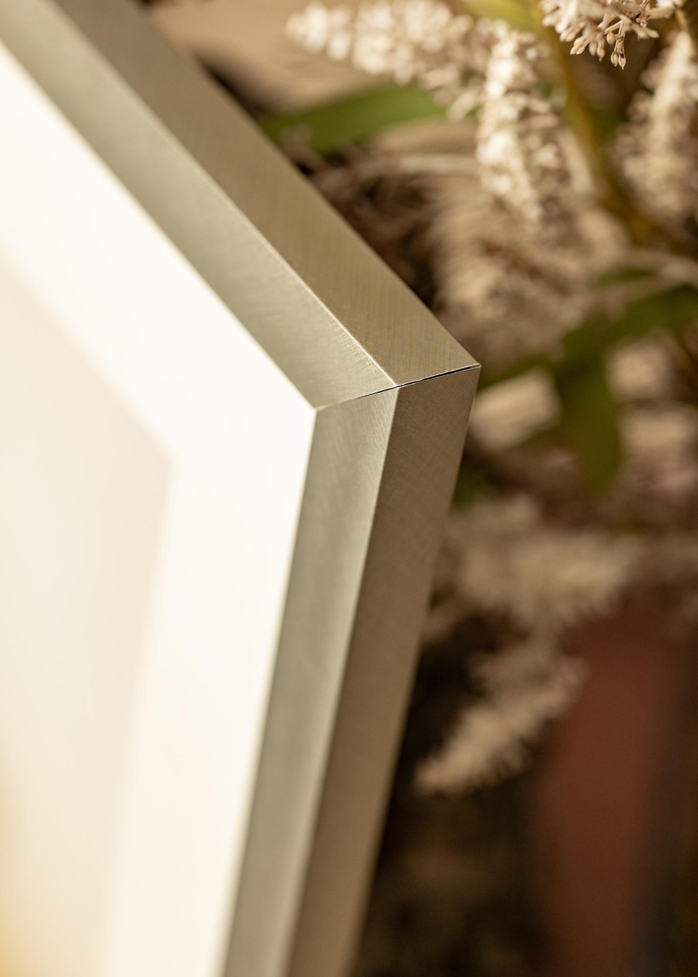 Cadru modern și elegant din aluminiu periat, care se potrivește bine cu toate tipurile de fotografii, postere și acuarele datorită culorii sale neutre. Designul discret face ca rama să se integreze în majoritatea mediilor, dar se potrivește deosebit de bine în stilul nordic răcoros. În ciuda designului său elegant, rama se simte solidă și stabilă. Cumpărați un passepartout care completează înrămarea și evidențiază imaginea într-un mod elegant. Agățați tabloul împreună cu alte motive în rame de metal.