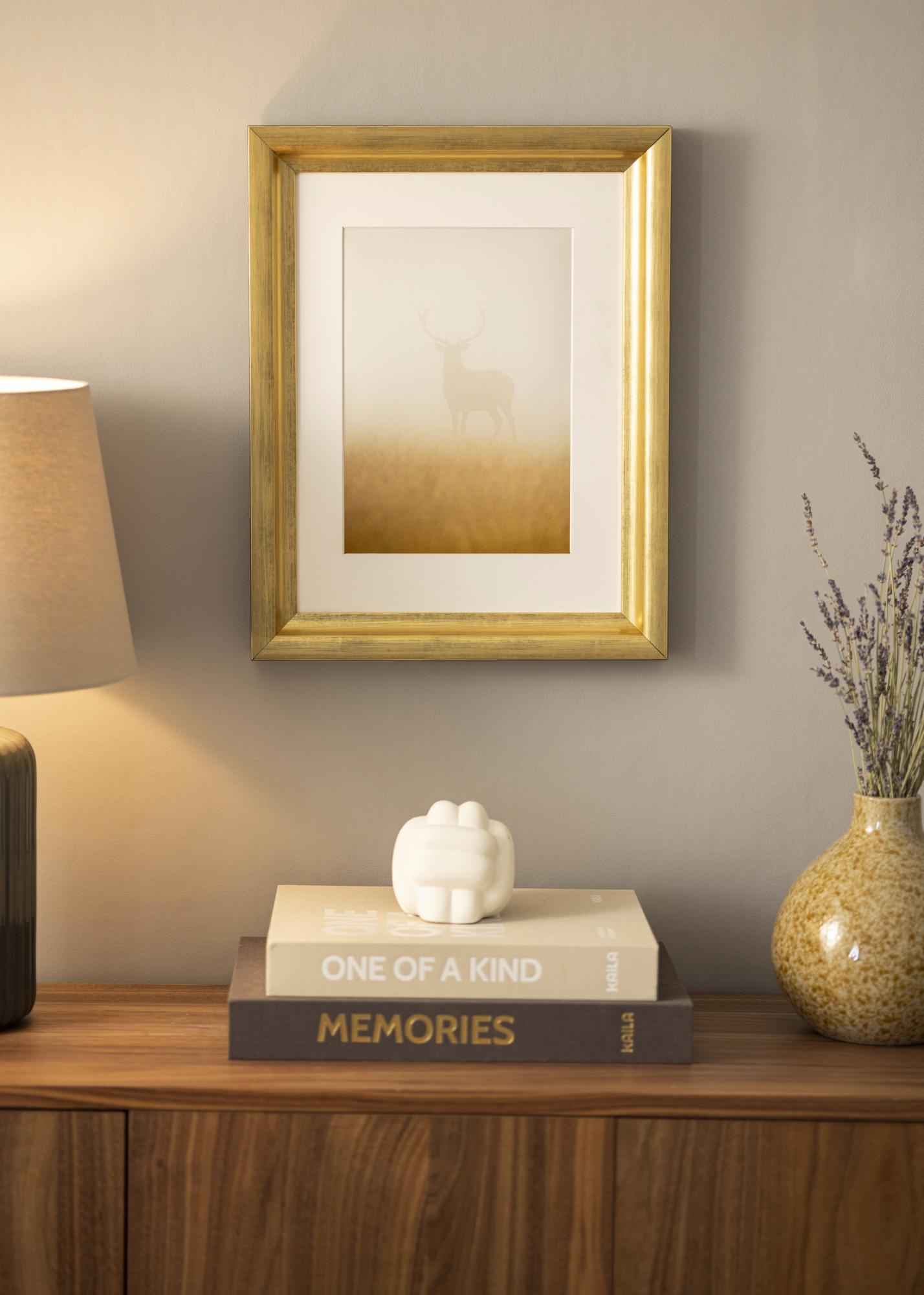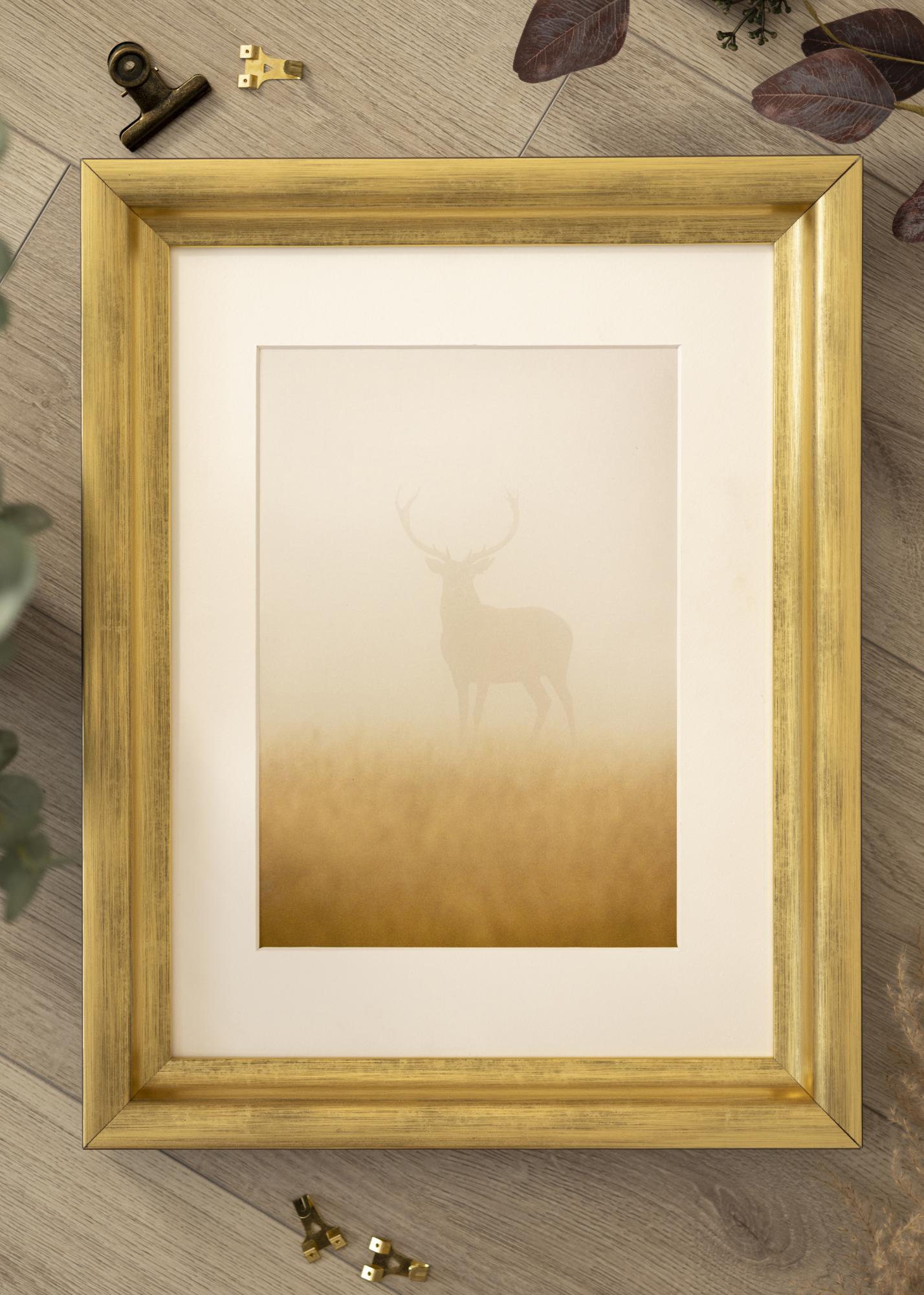 Ramă clasică pentru tablouri, unde alegi singur cât de mare vrei să fie rama. Cu profilul său larg și adânc, aceasta este garantat o ramă care atrage atenția. Rama are o nuanță moale și plăcută de aur, care oferă o senzație primitoare și frumoasă motivului.