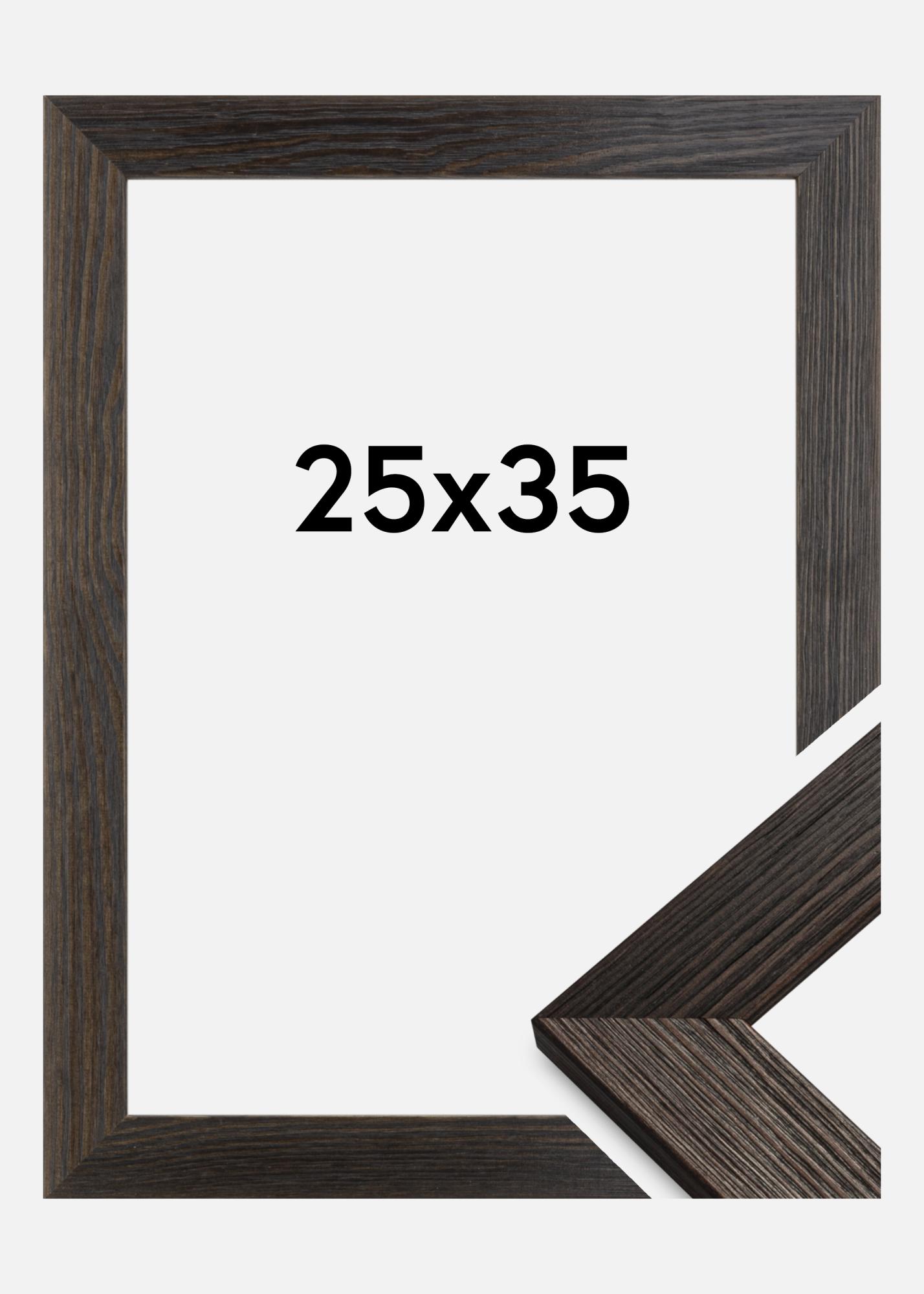Cadră solidă din lemn maro cu fibre de lemn vizibile și un profil larg. Potrivită atunci când cauți o cadru din lemn închis cu un sentiment natural. Perfectă pentru imagini de mediu și peisaje.