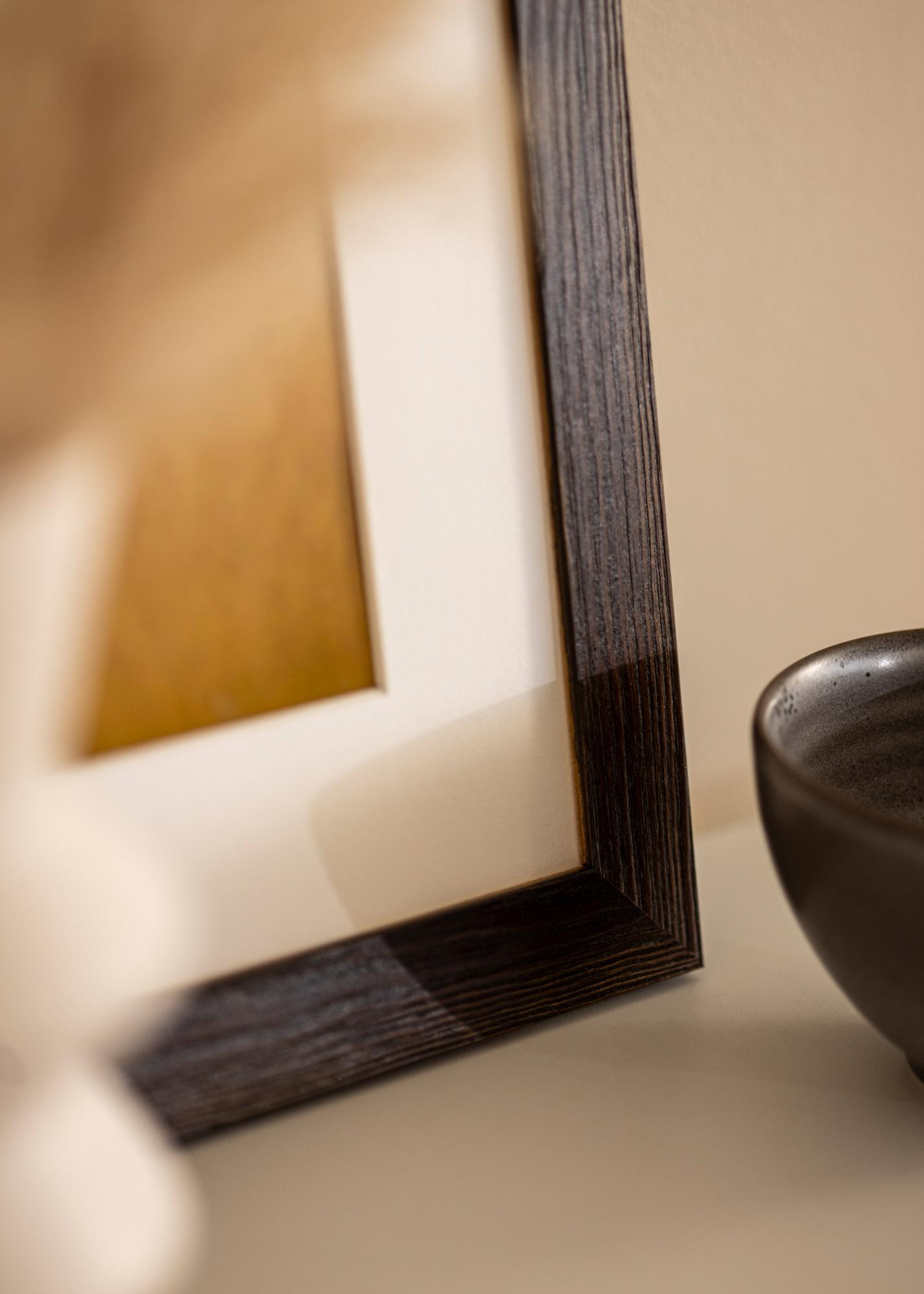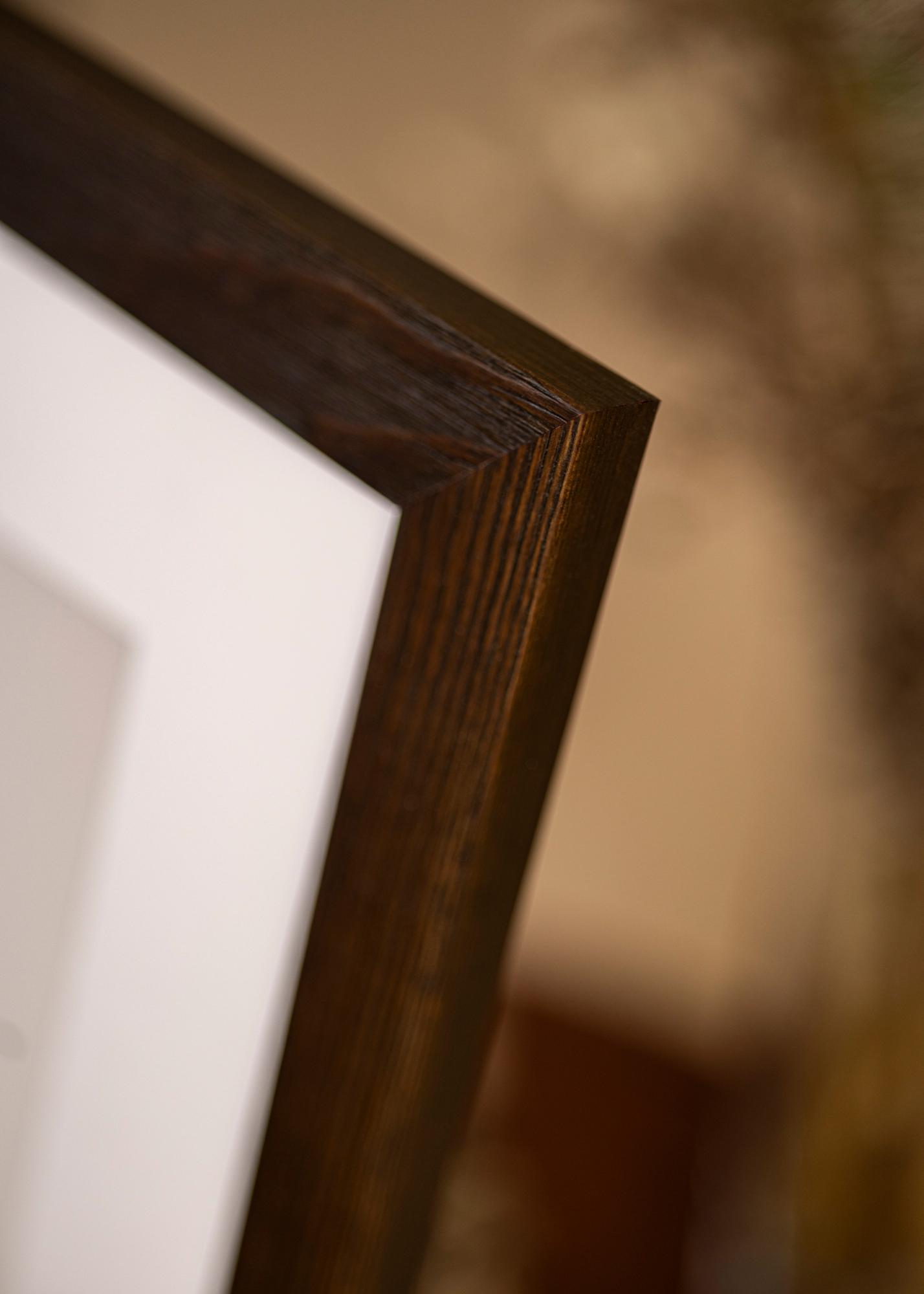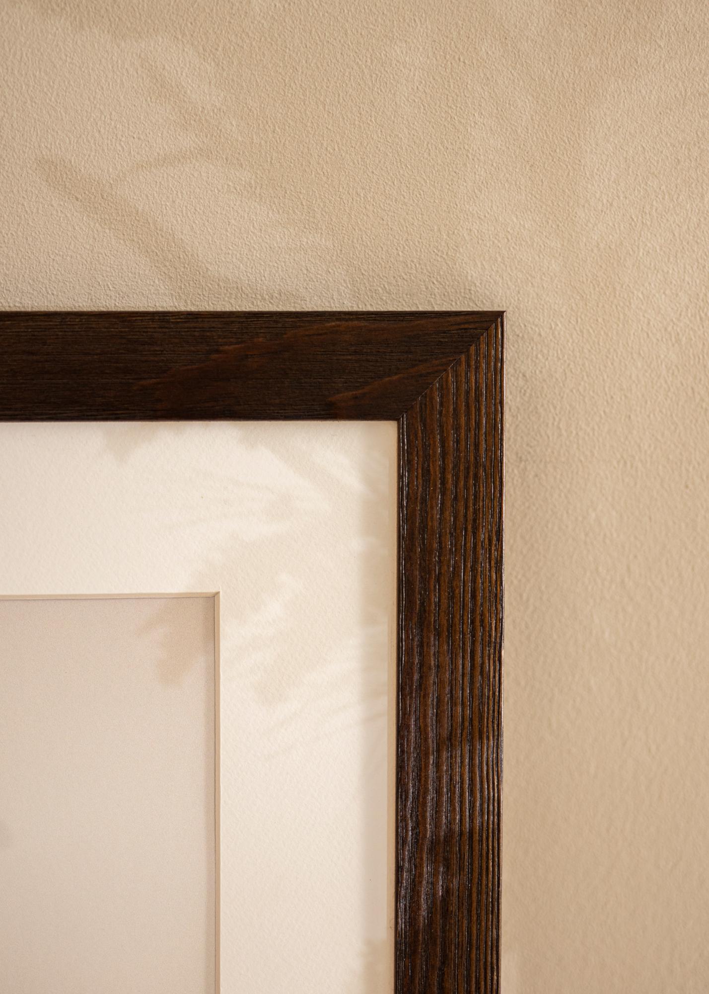 Cadru solid din lemn maro cu fibre vizibile și un profil lat. Se potrivește bine atunci când cauți un cadru de lemn închis cu un aspect natural. Perfect pentru imagini de mediu și imagini de peisaj.
