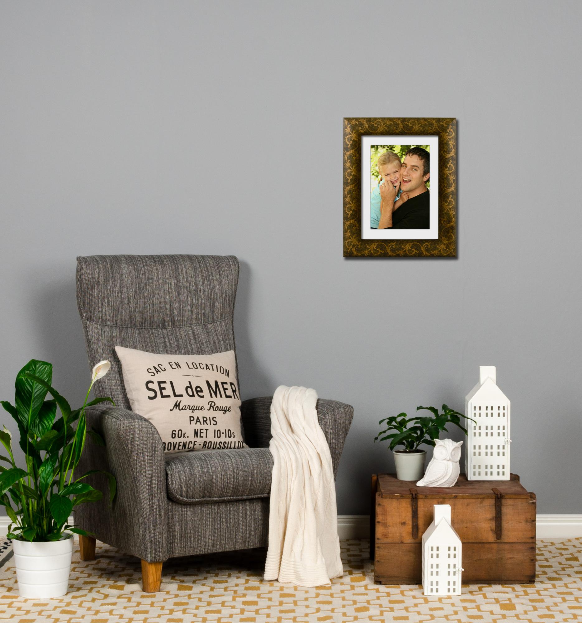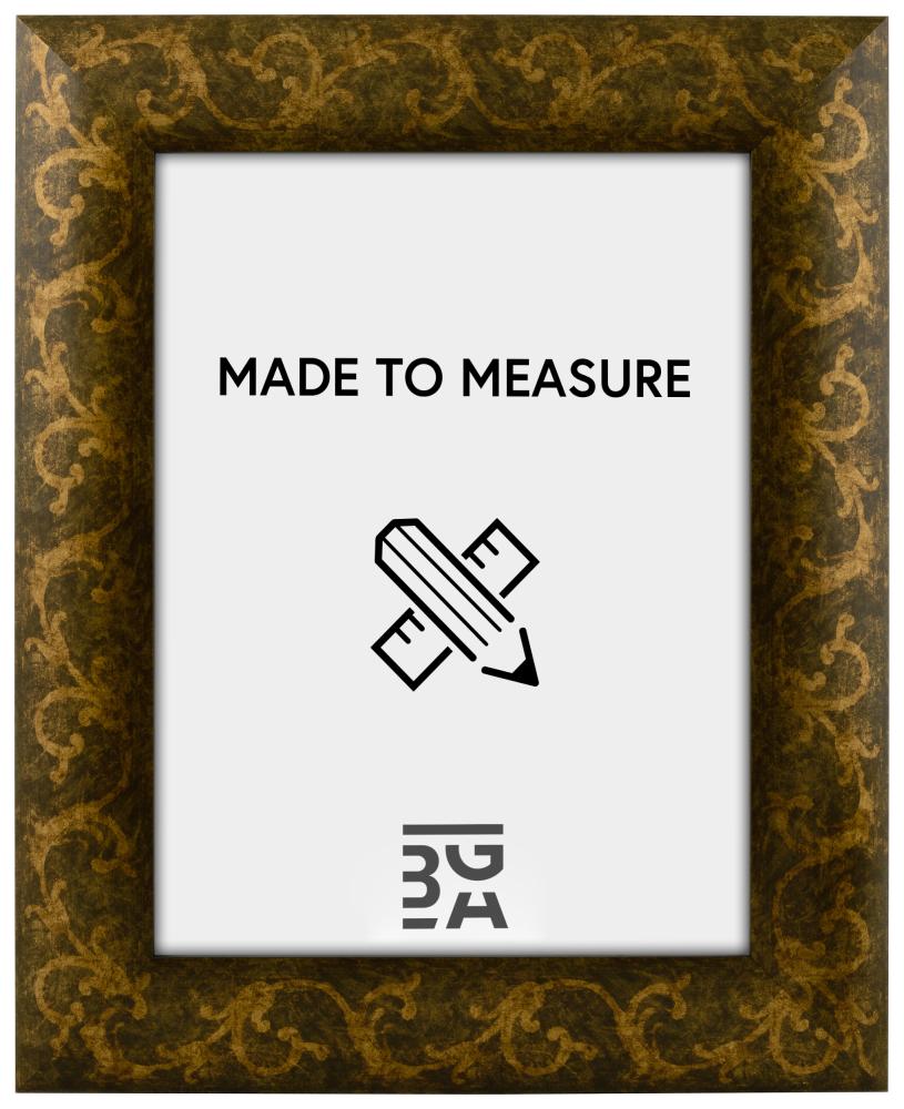 Îți plac detaliile de interior luxoase care adaugă caracter? Atunci avem aici rama perfectă pentru a-ți așeza cele mai frumoase fotografii! Această ramă de tablou cu un model sinuos are un model frumos care strălucește în aur. Suprafața lucioasă este tratată pentru a oferi un aspect uzat și îmbătrânit care se potrivește perfect într-un interior clasic sau retro. Deoarece rama este realizată în propriul nostru atelier de rame după măsurile dorite de tine, poți fi sigur că se potrivește perfect acolo unde vrei să o așezi.