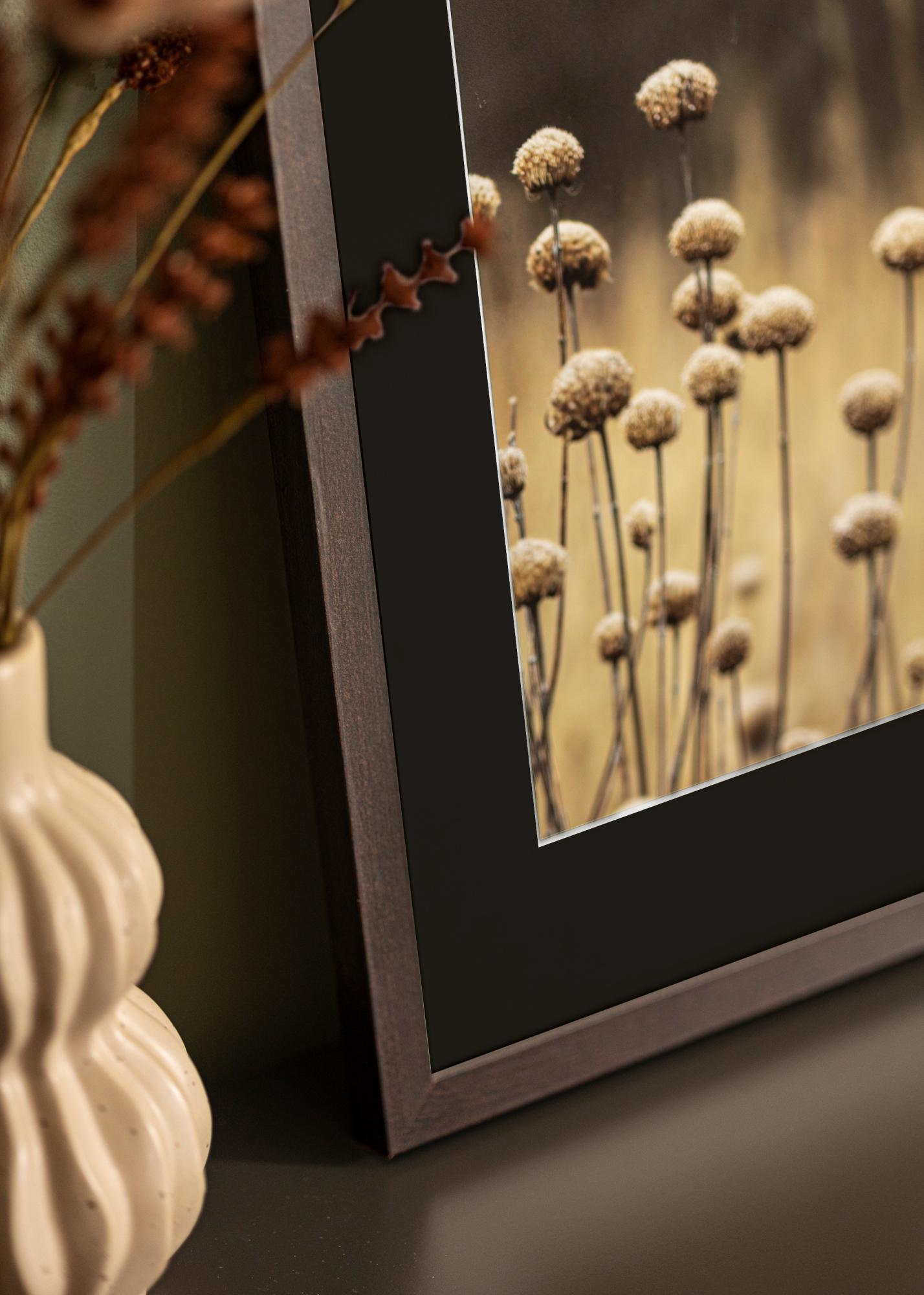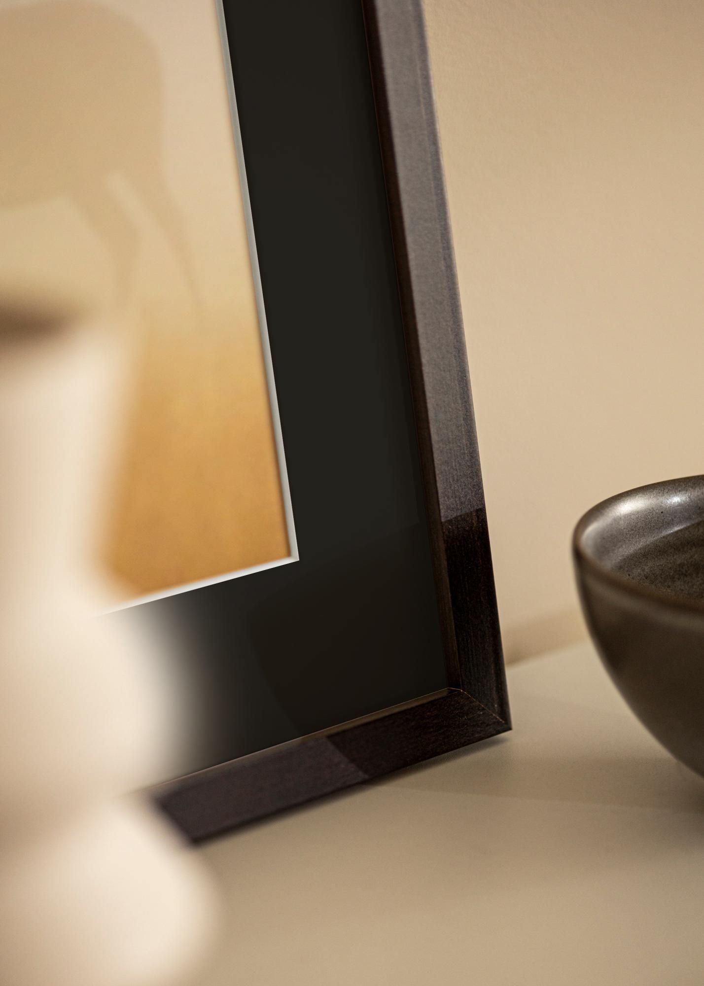 Cadrul, cu culoarea sa caldă de lemn și finisajul mat, oferă un design atemporal care completează atât stilurile de interior moderne, cât și cele tradiționale. Cu o lățime și o adâncime de 18 mm, cadrul creează o încadratură robustă care atrage privirea spre centrul imaginii. Passepartout-ul funcționează nu doar estetic, ci protejează și fotografia dvs. de contactul direct cu sticla, contribuind la păstrarea calității imaginii în timp.