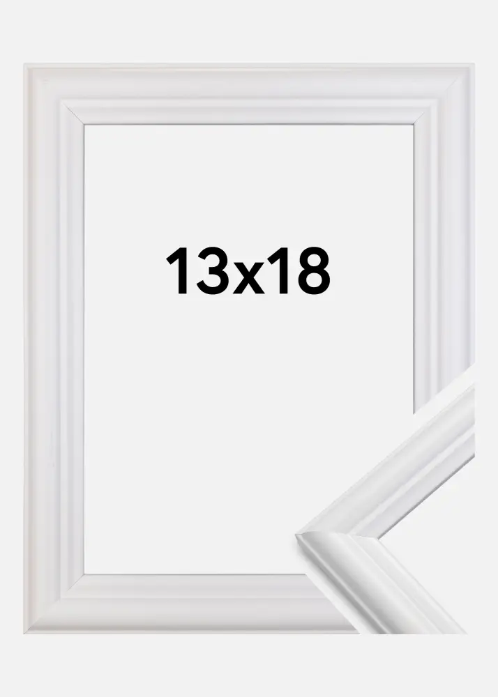 Rama Siljan Albă 8B are o listă clasic profilată din lemn, vopsită cu o culoare albă.