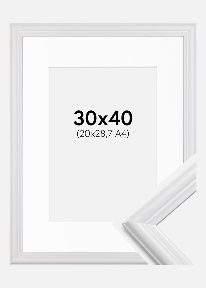 Ramă Siljan Alb 30x40 cm - Paspartu Alb 21x29,7 cm (A4)