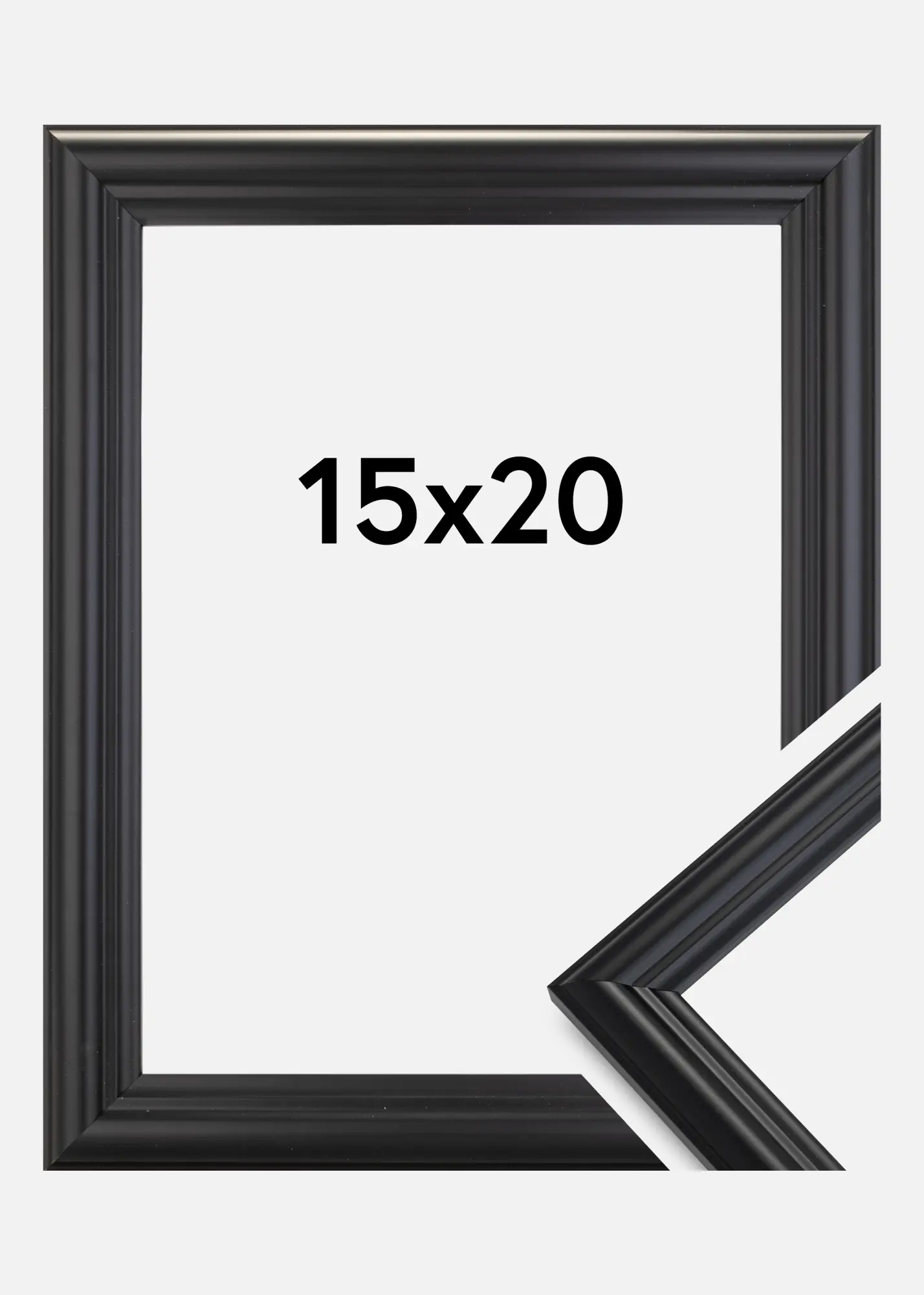 Ramă Siljan Negru 8C are o baghetă din lemn cu un profil clasic, vopsită cu o culoare negru mat.