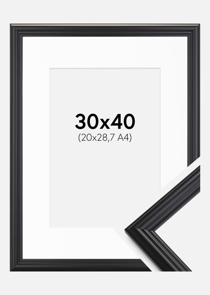 Ramă Siljan Negru 30x40 cm - Paspartu Alb 21x29,7 cm (A4)