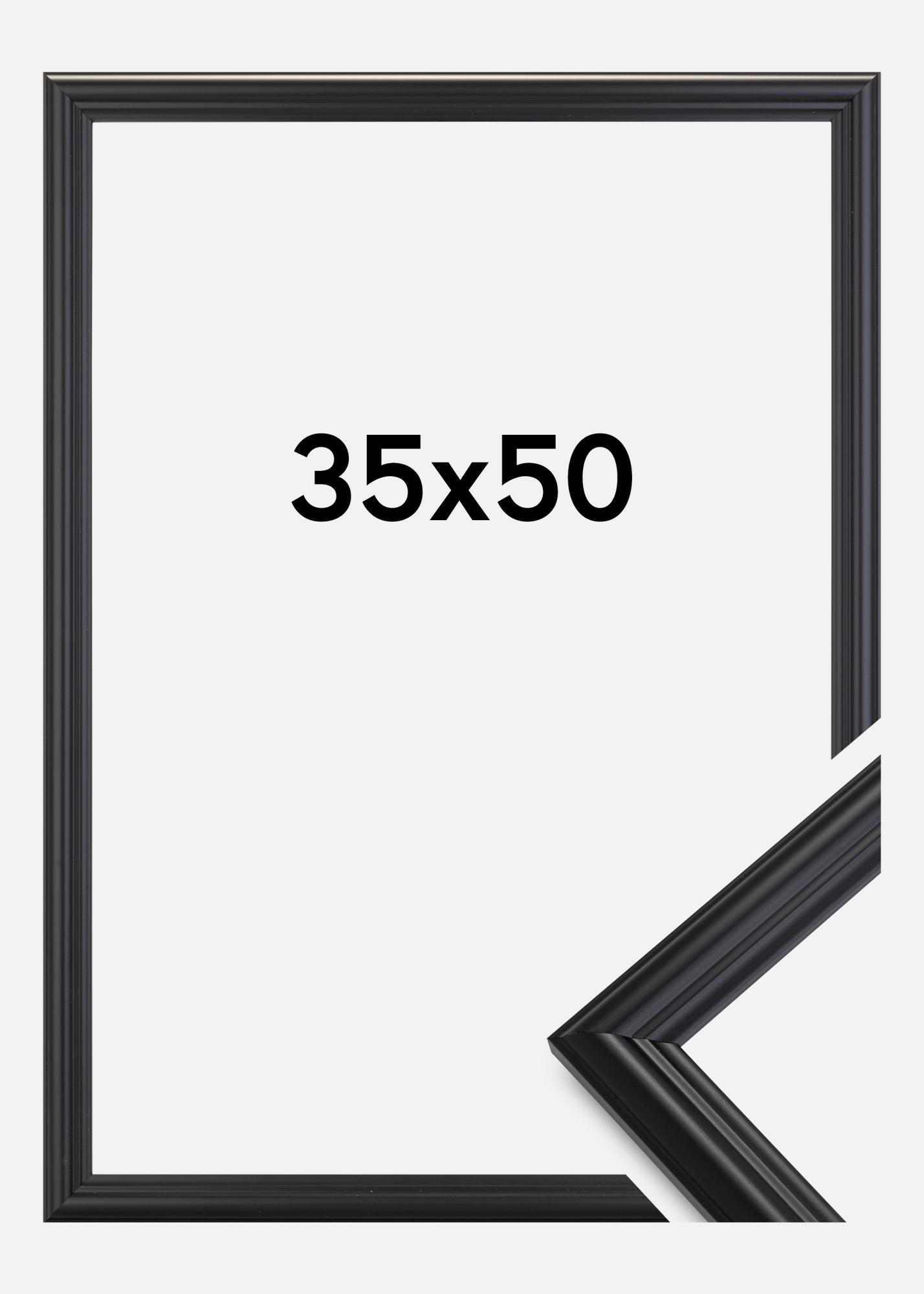 Rama Siljan Neagră 8C are o listă de lemn profilată clasic, vopsită cu o culoare neagră, mată.