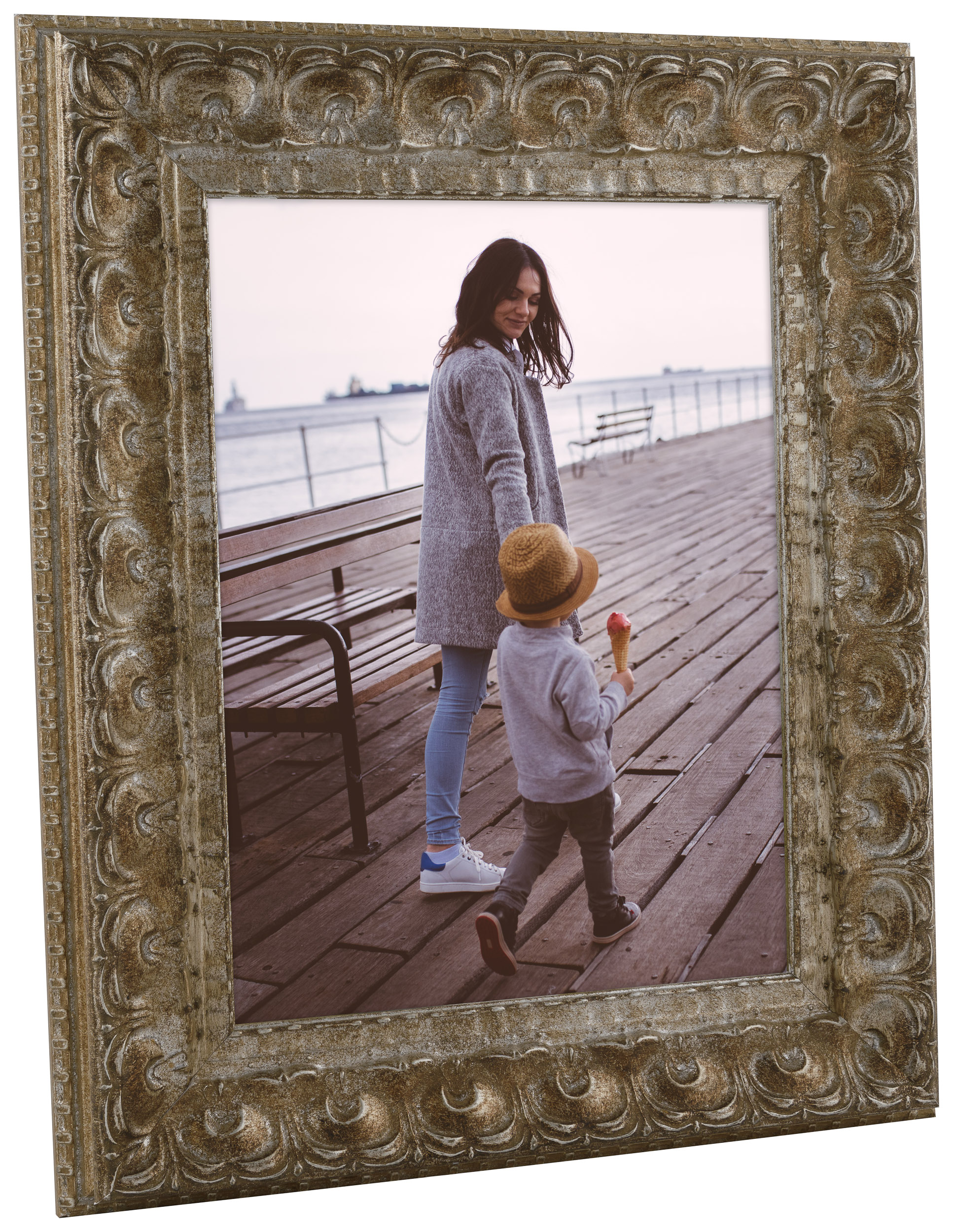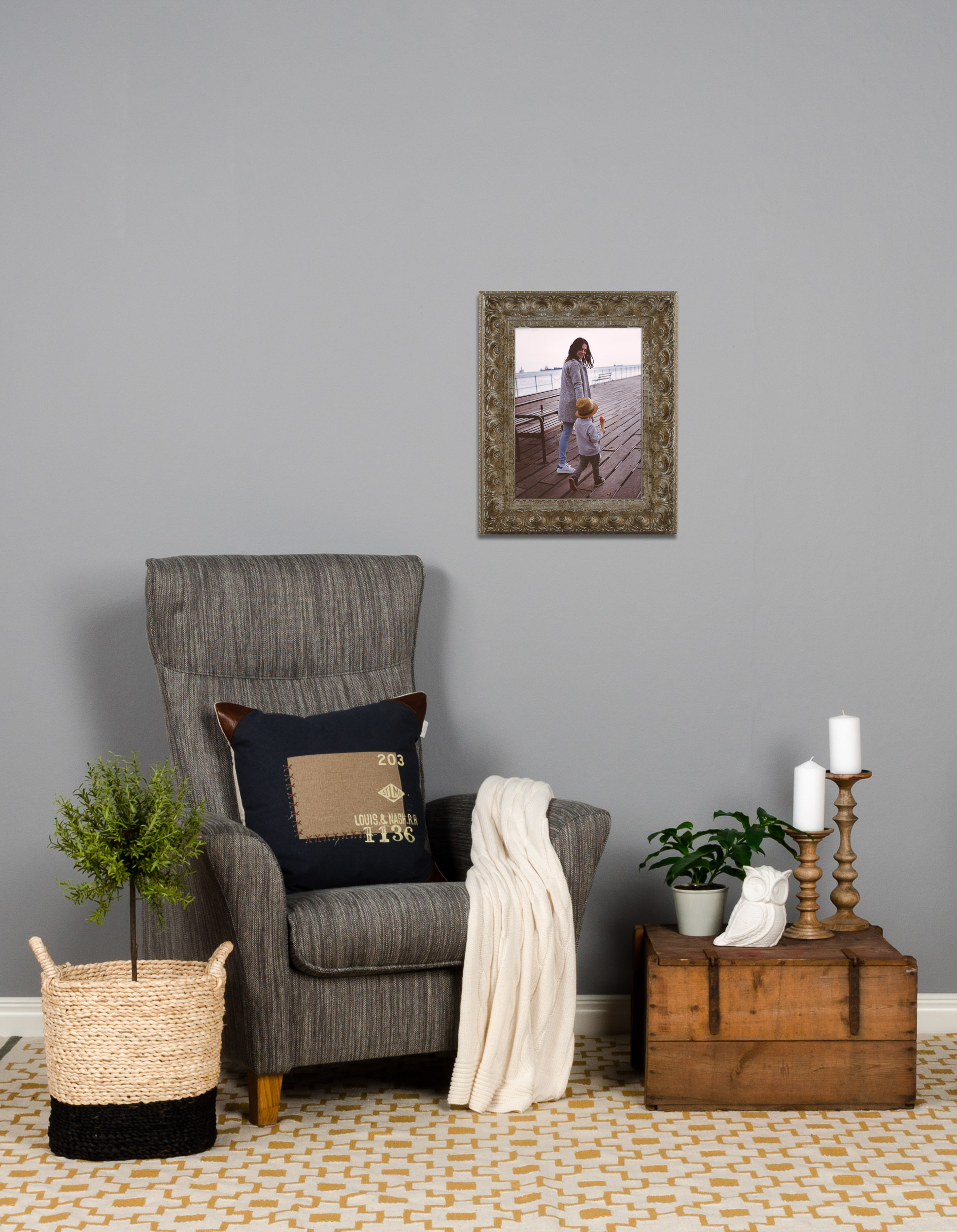 Rama Skokloster Argintiu este o ramă foto elegantă și atemporală, realizată în propriul nostru atelier de rame. Cu finisajul său antic argintiu și profilul său clasic ornamentat, această ramă de tablou oferă o senzație rustică și sofisticată care se potrivește perfect în stiluri de interior tradiționale. Ornamentația detaliată și suprafața patinată conferă ramei un caracter unic care îmbunătățește orice încăpere.
