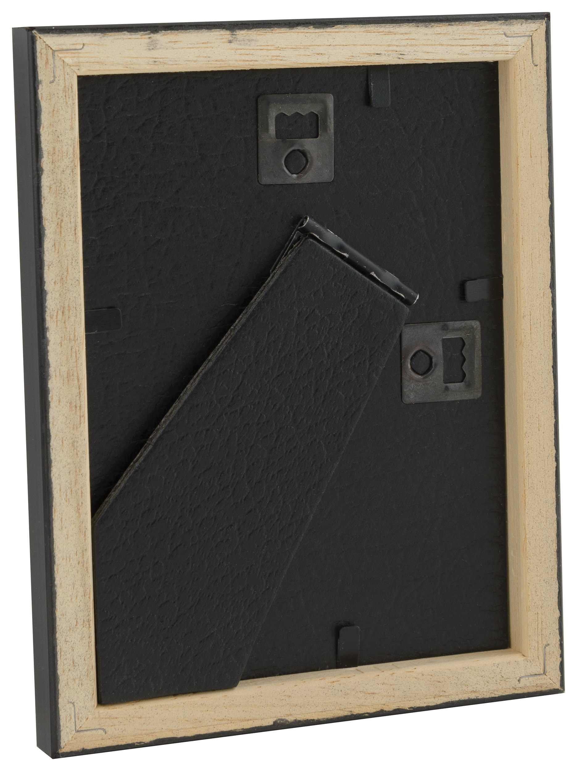 Puneți fotografia, pictura sau posterul dumneavoastră în această ramă elegantă! Rama este fabricată din lemn vopsit negru și are un geam antireflex. Spatele și suportul sunt îmbrăcate în imitație de piele neagră, oferind o senzație extra luxoasă.