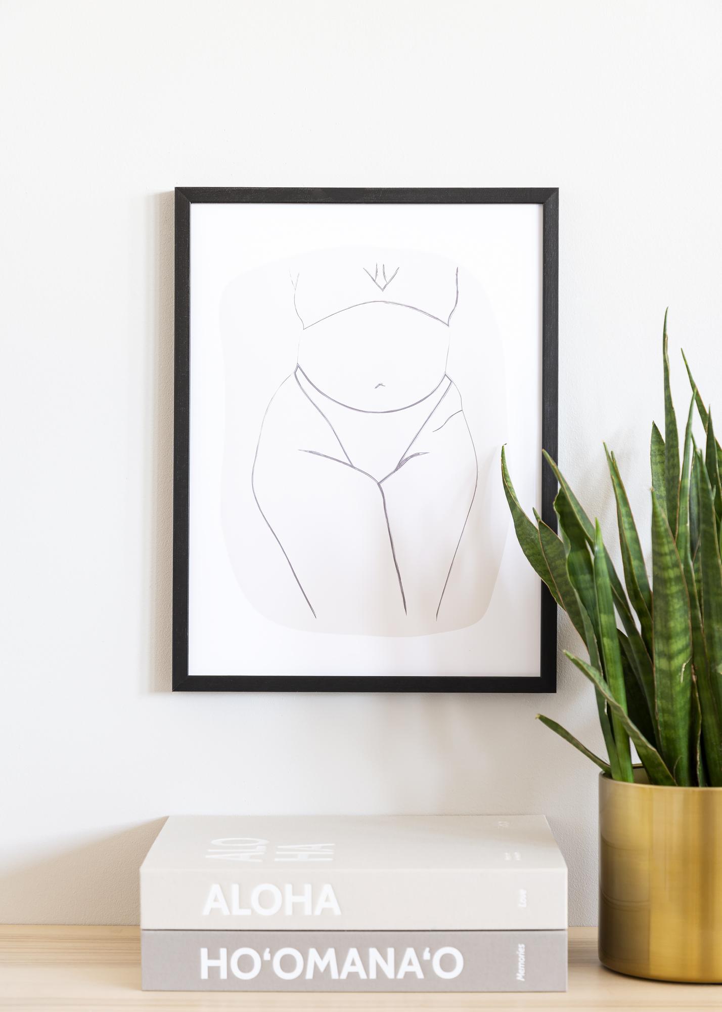 Soul Negru este o ramă modernă din lemn, a cărei listă largă de 13,5 mm creează un contrast mare între imagine și perete. Este perfectă pentru tine dacă cauți o ramă care pune accentul pe motivul tău și atrage privirea asupra tabloului ca întreg. Profilul lat și unghiular creează o expresie foarte elegantă, care este amplificată de culoarea neagră vopsită. Spatele ramei este realizat din MDF maro și este dotat cu agățători care îți permit să agăți rama atât orizontal, cât și vertical. Poți monta cu ușurință imaginea ta prin îndoirea știfturilor metalice care țin spatele în loc.