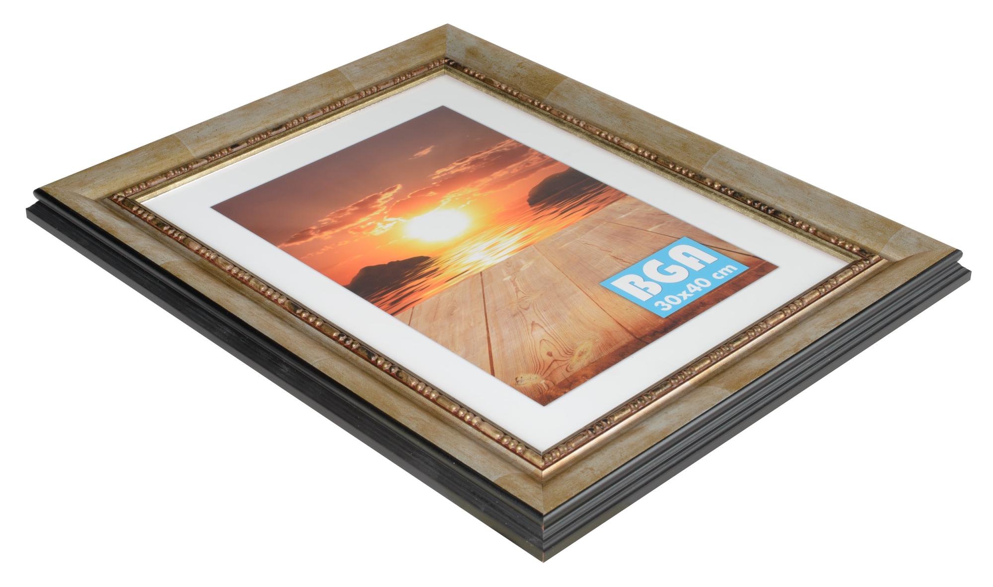 Ramă clasică pentru portrete pentru fotografii care îți plac foarte mult. Rama are părțile laterale negre cu o culoare argintie profilată pe partea din față cu decorațiuni aproape de motiv.