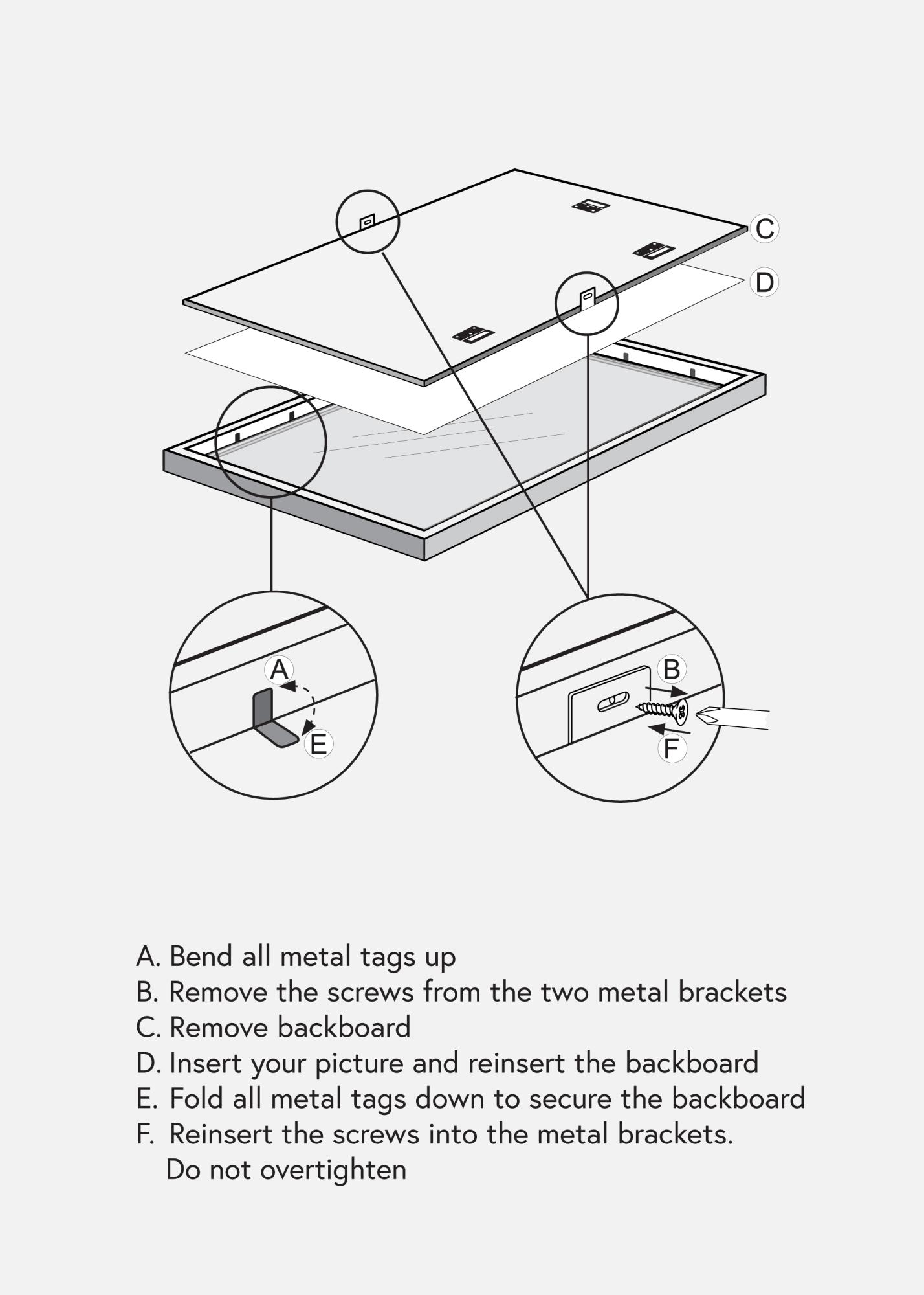 Rama are o lățime de 14 mm și o adâncime de 18 mm, oferind o senzație stabilă și robustă. Echipată cu cârlige de metal pe partea din spate, această ramă poate fi agățată cu ușurință atât pe orizontală, cât și pe verticală, oferind flexibilitate în modul în care dorești să îți expui imaginile. Sticla acrilică cristal clară și rezistentă la spargere protejează imaginea ta în timp ce oferă o vizualizare clară și precisă. Ține minte să îndepărtezi folia de protecție de pe ambele părți ale sticlei înainte de utilizare pentru cele mai bune rezultate.