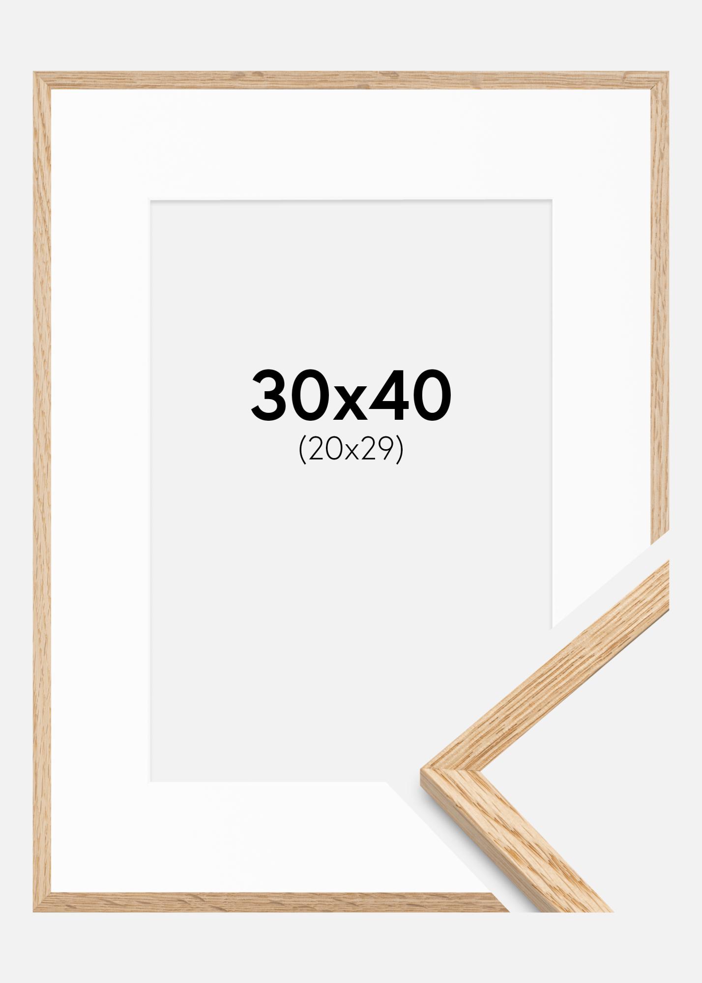 Ramă Stejar subțire 30x40 cm - Paspartu Alb 21x30 cm